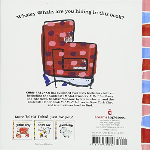 Theme: Hide-and-Seek. It’s hard to be discreet when you’re a whale (. . . or a preschooler). With relatable obviousness, Whaley Whale engages in a lighthearted game of hide-and-seek with the reader. Is she on the table? . . . Is she behind the door? This methodical progression builds an anticipation that delights young readers, while the unmistakable foreshadowing keeps parents giggling along. READ ALL THE THINGY THINGS BOOKS Buggy Bug Clammy Clam Cowy Cow Crabby Crab Doggy Dog Lamby Lamb Moosey Moose Whaley Whale
