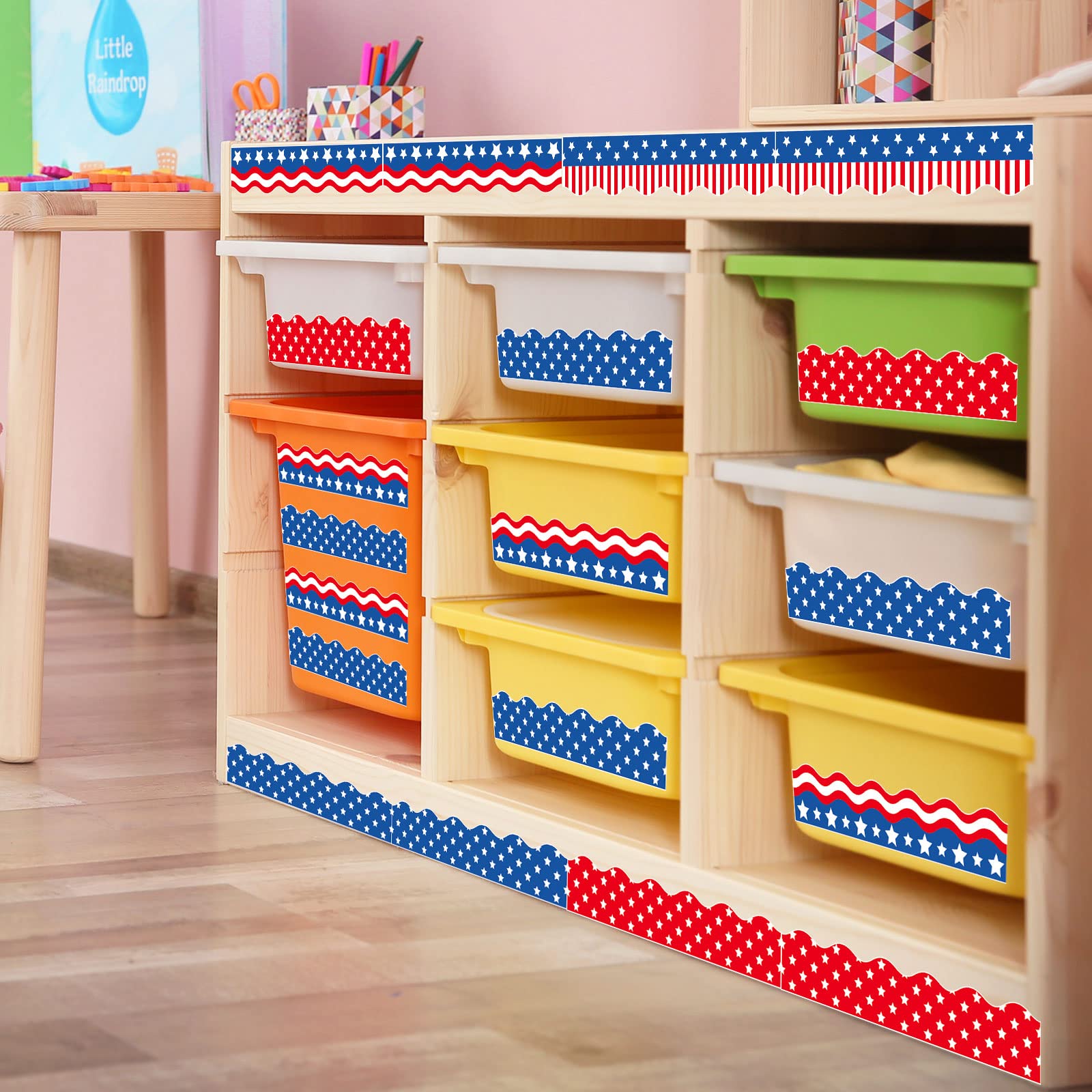 Patriotic Design – Our bulletin border stickers take red, blue and white as theme colors, patterned with stars and stripes, quite in line with the American flag, which will create strong holiday atmosphere for your home and classroom.