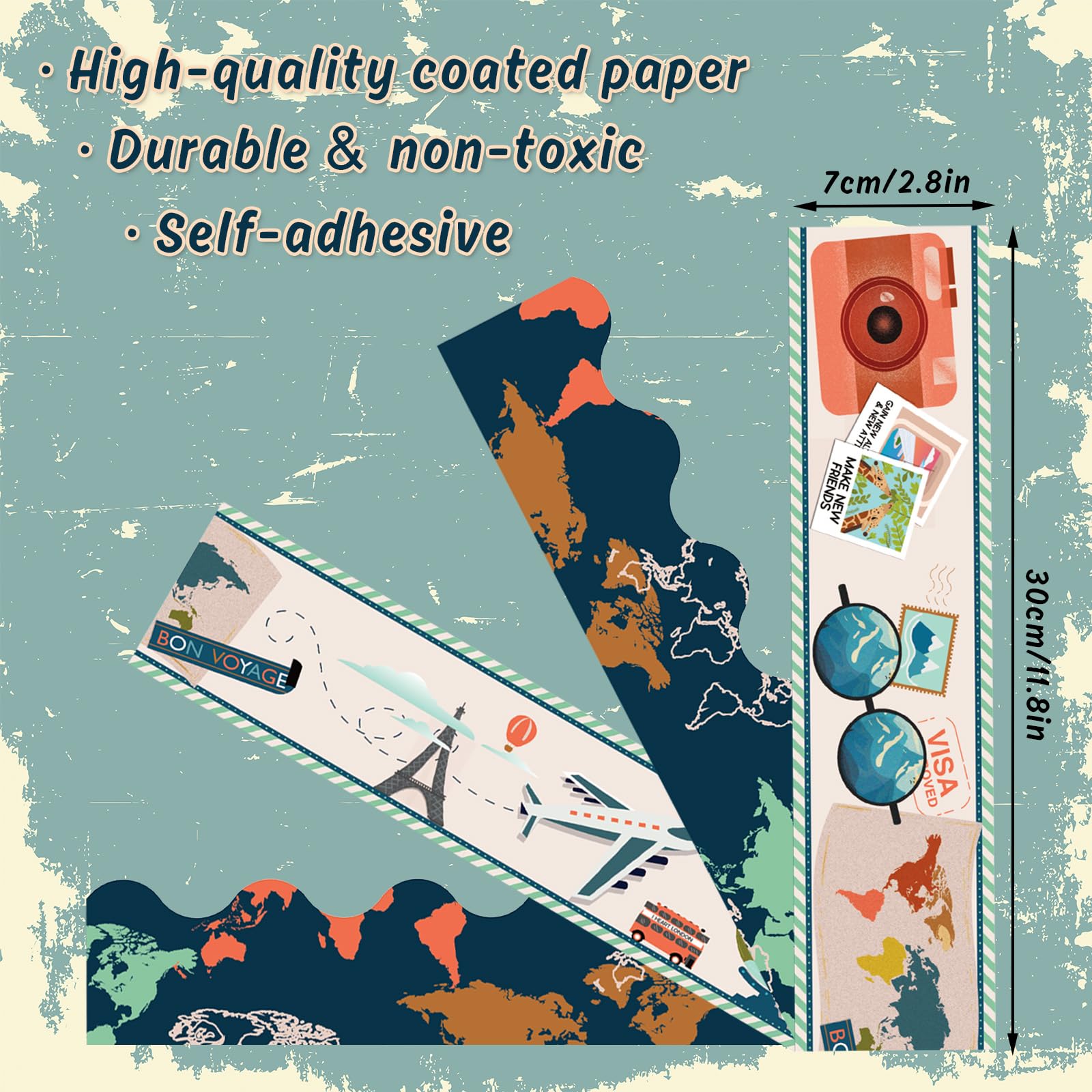 The Package Includes – 72Pcs travel map bulletin board borders in 4 different designs, each type for 18Pcs, they will offer sufficient quantity and designs to meet your various needs.