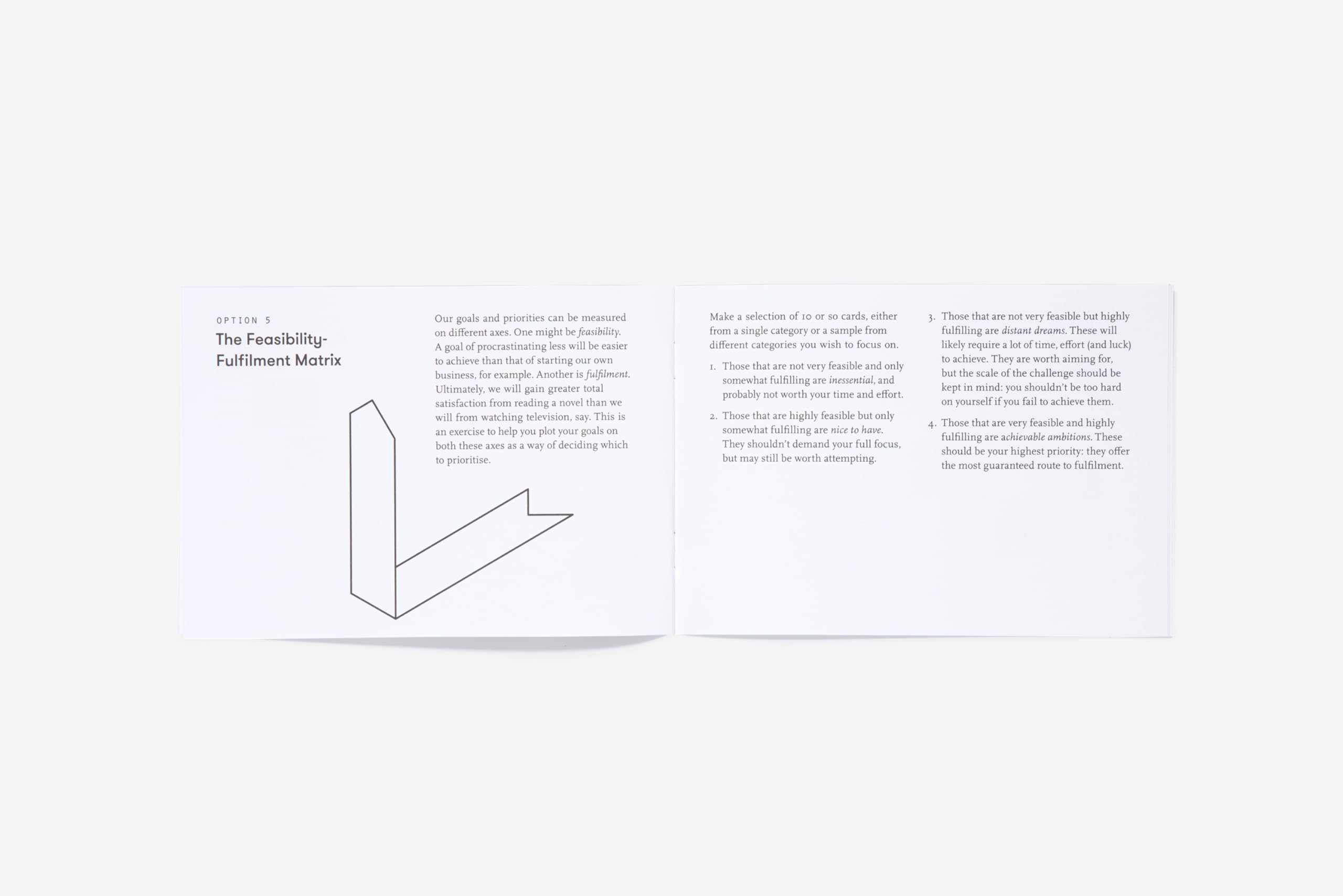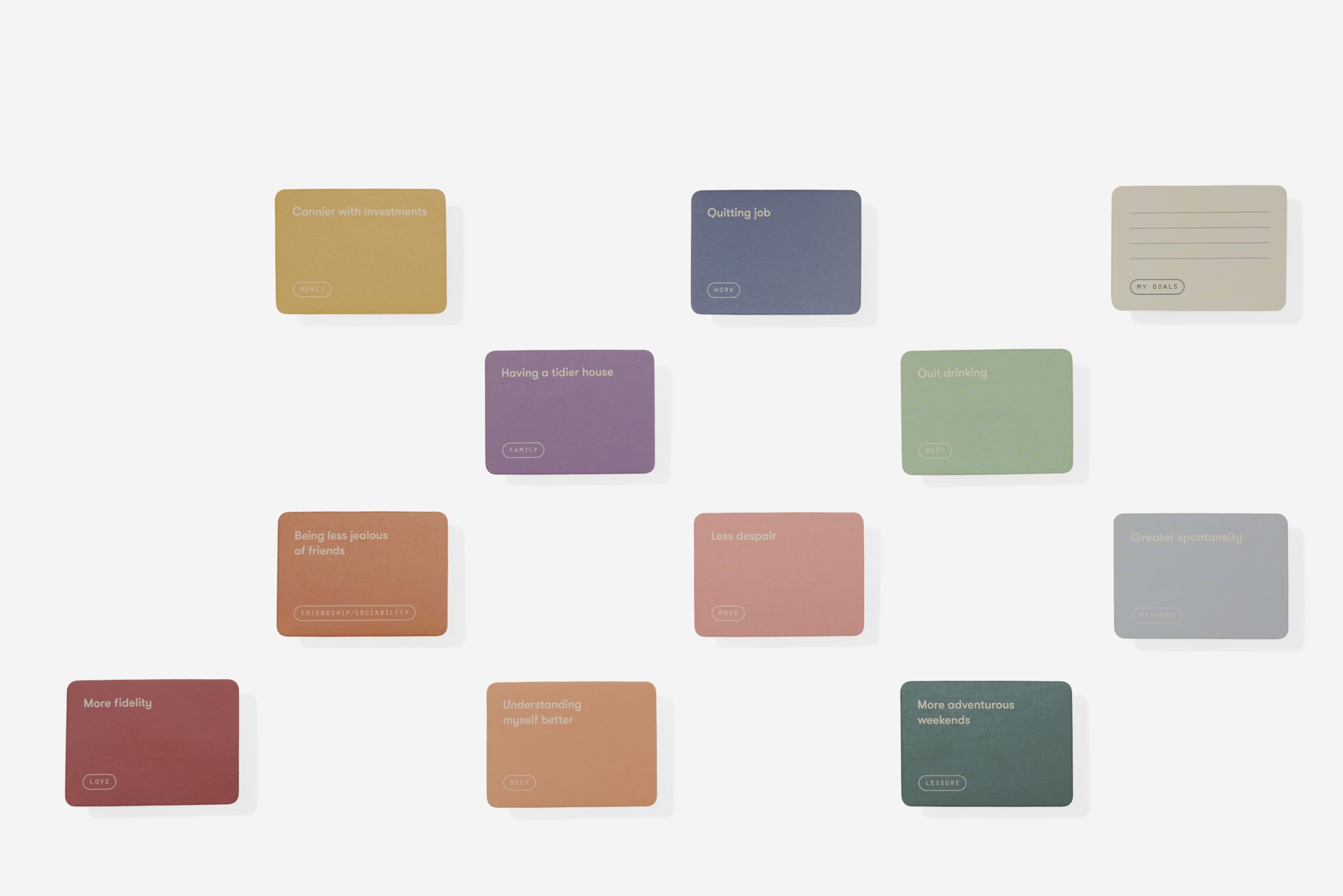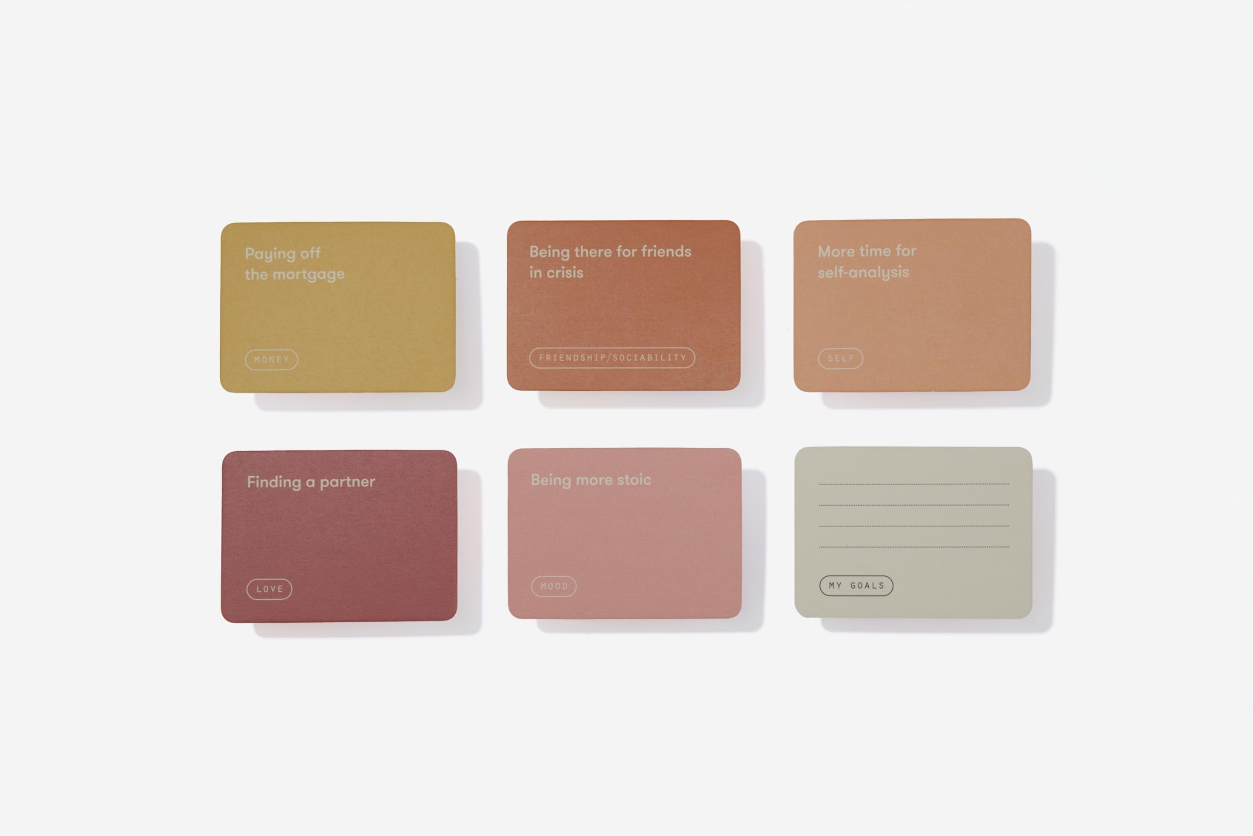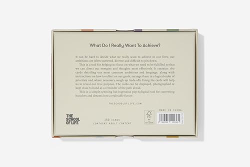 A guide for helping us focus on what we need to be fulfilled so that we can direct our energies and thoughts most effectively Finding a partner. Paying off the mortgage. Reconnecting with my parents. Less screen time. It can be hard to decide what we really want to achieve in our lives; our ambitions are often scattered, diverse and difficult to pin down. This is a tool for helping us focus on what we need to be fulfilled so that we can direct our energies and thoughts most effectively. It can be hard to decide what we really want to achieve in our lives; our ambitions are often scattered, diverse and difficult to pin down. This attractive box contains 160 cards detailing our most common ambitions and longings, along with instructions on how to reflect on our goals, arrange them in a logical order of priorities and, where necessary, weigh up trade-offs. Using the cards will help us to reveal our true goals, even our purpose in life. The cards can be displayed, photographed or kept close to hand as a reminder of the path ahead. A simple-seeming but ingenious psychological tool for converting hunches and dreams into a realizable future.