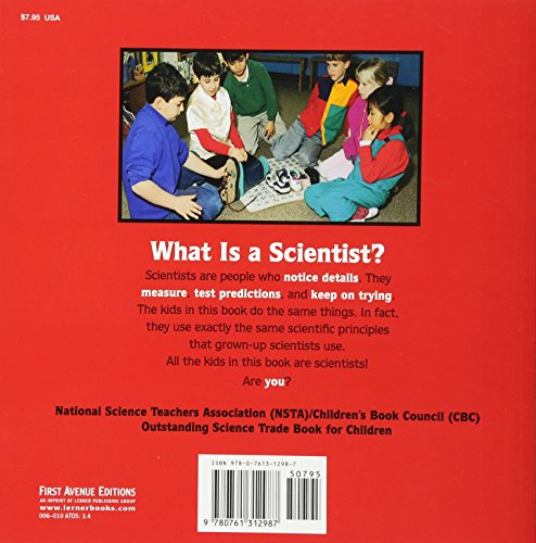 Simple text and full-color photographs depict children engaged in various activities that make up the scientific process: asking questions, noticing details, drawing what they see, taking notes, measuring, performing experiments, and more.