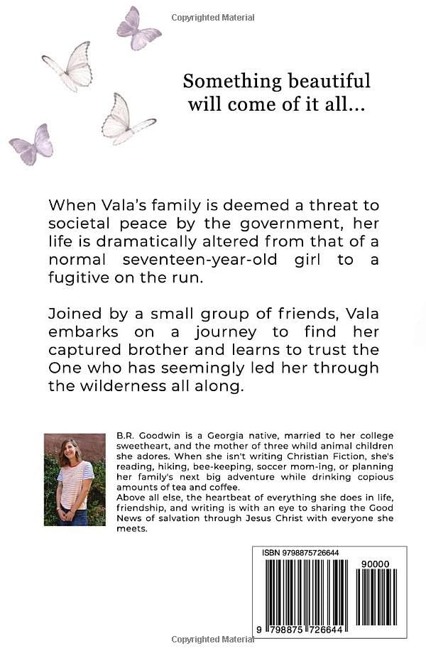 When Vala’s family is deemed a threat to societal peace by the government, her life is dramatically altered from that of a normal seventeen-year-old girl to a fugitive on the run. Joined by a small group of friends, Vala embarks on a journey to find her captured brother and learns to trust the One who has seemingly led her through the wilderness all along.