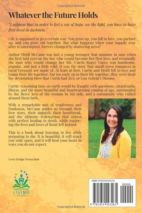 “I suppose that in order to feel a ray of hope, see the light, you have to have first lived in darkness. ” Life is supposed to go a certain way. You grow up, you fall in love, you partner up, and you grow old together. But what happens when your happily ever after is interrupted, forever changed by shattering news? Author Heidi McCann was just a young teenager that summer in 1990 when she first laid eyes on the boy who would become her first love, and eventually the man who would change her life. Curtis Roger Vance was handsome, popular, and just a little wild. It was the story that small town romances in rural Vermont are made of. At least at first. Curtis and Heidi did fall in love and begin their life together, albeit through several breakups and a long twisty road to young adulthood. However, far too early on in their life together, they were dealt the devastating blow that Curtis had ALS, or Lou Gehrig’s Disease. Curtis’ remaining time on earth would be fraught with questions, catastrophic illness, and the most beautiful and heartwarming coming of age, surrounded by the fierce love of the woman by his side, and a community who rallied around them both. With a remarkable mix of tenderness and frankness, McCann guides us through their love story, their anguish, their heartbreak, and the ultimate redemption that comes with perfect healing in death, while exploring the lives and loves of those left behind. This is a book about learning to live while preparing to die. It is beautiful, it will crack you wide open, and it will heal your heart in ways you do not expect. All that I am I give to you, and all that I have I share with you. Whatever the future holds, I will love you and stand by you. We will be united for all eternity. This is my solemn vow.