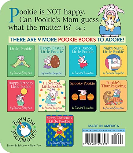 Uh-oh, Pookie is NOT happy in this kind-of-cranky board book from Sandra Boynton. When Pookie feels down, Pookie’s mom can always guess what’s wrong with her little one. Or can she? With Sandra Boynton’s signature charm and piggy pizzazz, this turn-that-frown-upside-down story proves that every Little Pookie loves a reason to smile. Oh, sweet little Pookie! Your bright eyes are wet. Come over and tell me why you are upset.