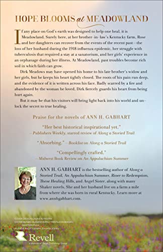 If any place on God’s earth was designed to help one heal, it is Meadowland. Surely here, at her brother-in-law’s Kentucky farm, Rose and her daughters can recover from the events of the recent past–the loss of her husband during the 1918 influenza epidemic, her struggle with tuberculosis that required a stay at a sanatorium, and her girls’ experience in an orphanage during her illness. At Meadowland, hope blooms as their past troubles become rich soil in which their faith can grow. Dirk Meadows may have opened his home to his late brother’s widow and her girls, but he keeps his heart tightly closed. The roots of his pain run deep, and the evidence of it is written across his face. Badly scarred by a fire and abandoned by the woman he loved, Dirk fiercely guards his heart from being hurt again. But it may be that his visitors will bring light back into his world and unlock the secret to true healing. Bestselling author Ann H. Gabhart explores the tender places within the human heart in this character-driven story of trusting God to turn our burdens into something beautiful. *** “Gabhart shines in crafting protagonists who exude quiet strength and optimism in search of wholeness. With its pastoral setting and reflective characters, this cozy read explores the uncertainty present in every new beginning.”–Booklist “When the Meadow Blooms is a touching, wholesome story about second chances and the possibility we all have for growth.”–Manhattan Book Review