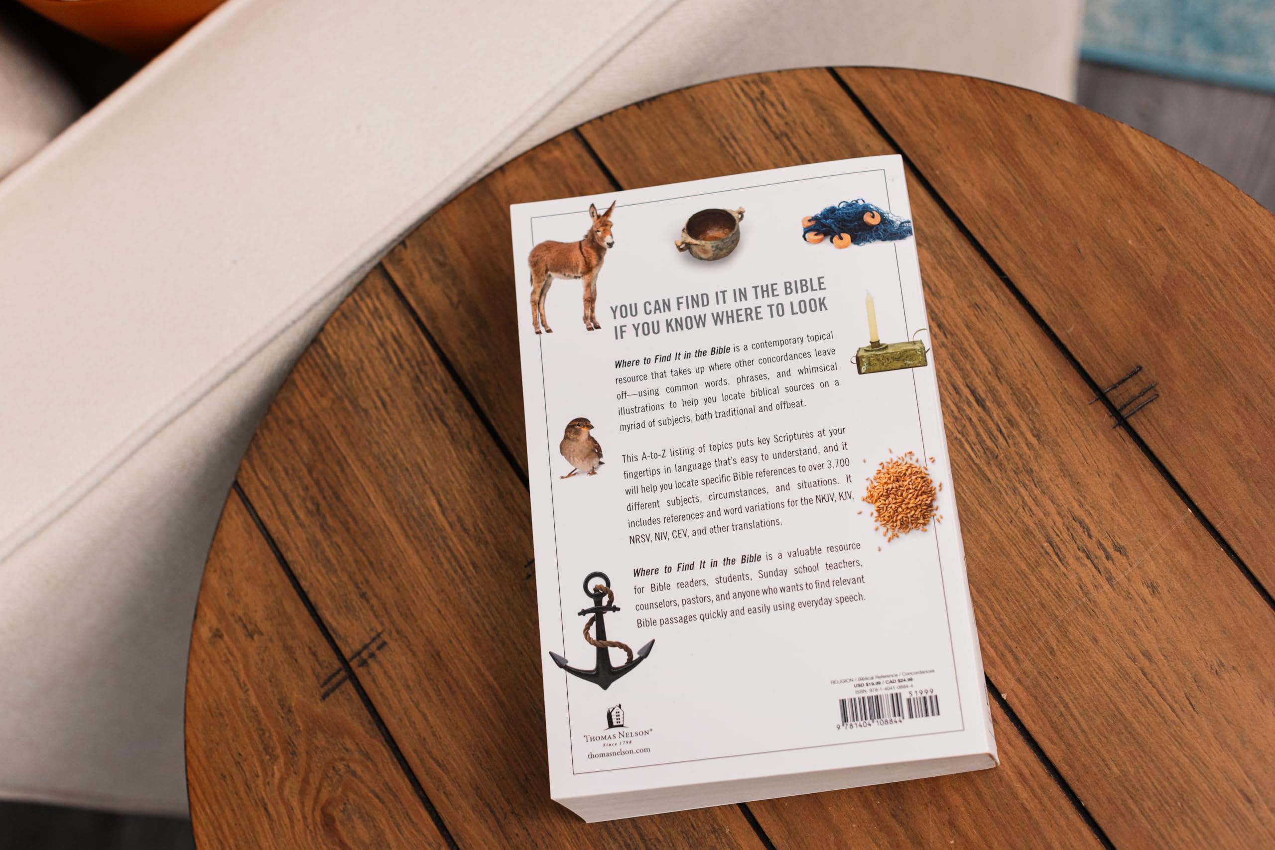 Have you ever tried to find a passage in Scripture related to a specific topic? This topical index makes it quick and easy to find out what the Bible says about anything–from abstinence to zoology. Maybe you want to know what the Bible says about age or agriculture. Does it have any word on credit cards, diet, computers, politics, or depression? With thousands of different subjects, circumstances, and situations, Where to Find It in the Bible is your one-stop A-Z index of biblical topics and is perfect for: Brand-new Christians or decades-long believers. Traveling or as an on-the-go reference. Personal study, teaching, and sermon preparation. Birthdays, graduations, Mother’s Day, Father’s Day, holiday gift giving, or as a welcome gift for new church members. With this resource, you’ll be able to quickly find topics that directly connect contemporary issues and 21st-century subjects and circumstances to Bible passages.