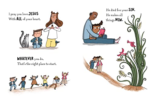 Charming rhyming board book that tells toddlers your greatest aspirationthat they will love and follow Jesus. With just a few words per page, engaging illustrations, and robust board-book format, this charming rhyming book is ideal for toddlers. Kids love to dream about what they might do when they grow up: jobs they might have, places they might go to, people they might meet. As children embark on life’s journey with all their potential and aspirations, use this beautifully illustrated, rhyming storybook to tell them your biggest dream – that whatever they do and wherever they go, they will love and follow Jesus. Makes a wonderful gift for toddlers–for birthdays, Christmas, or baptism/christening. Can also be given at a baby shower or gender-reveal party.