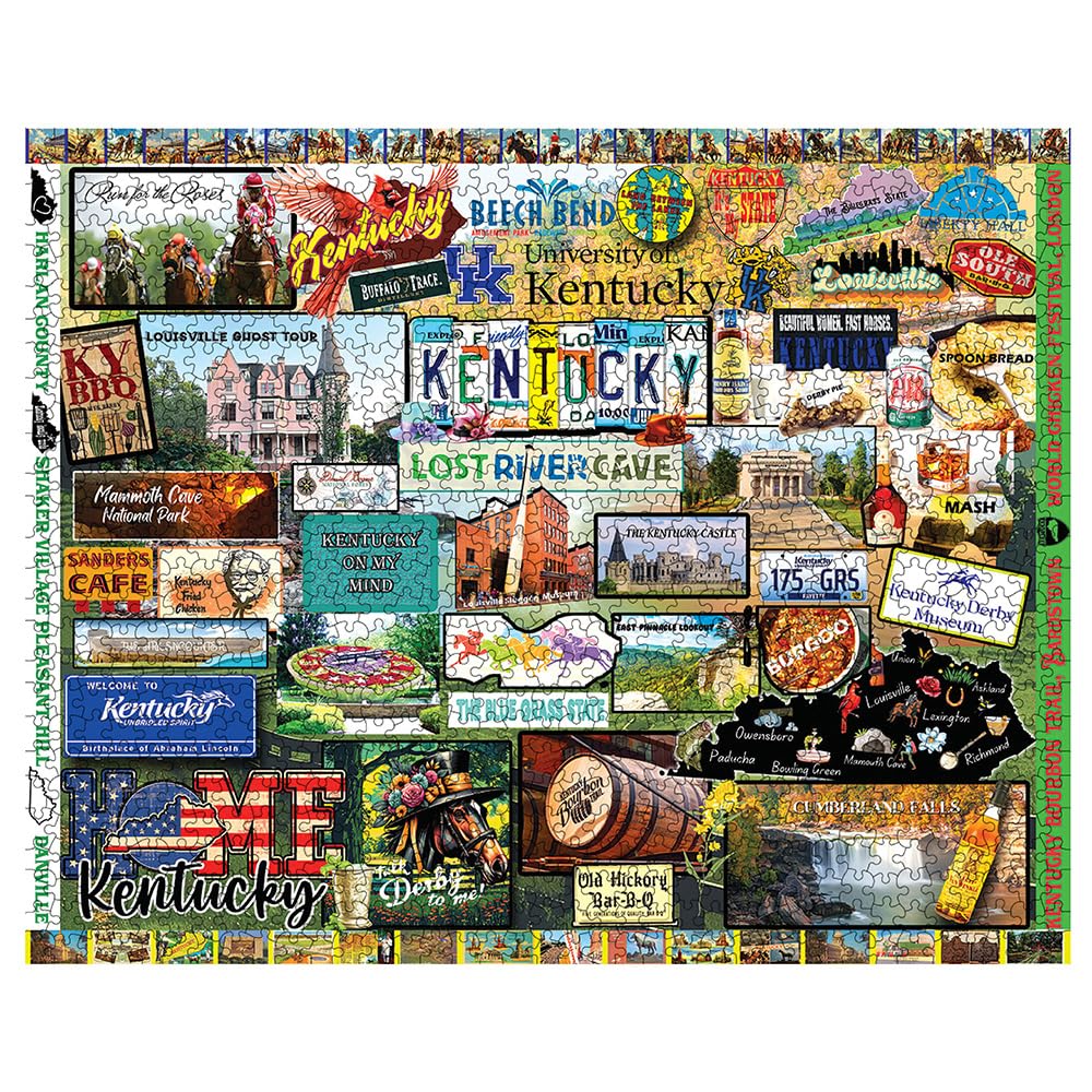 - Kentucky In Every Piece: From bourbon trails to the Kentucky Derby, this puzzle celebrates all things Kentucky, making it a wonderful keepsake for anyone who calls the Bluegrass State home.
