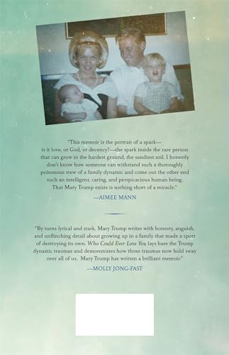 Instant New York Times and USA Today nonfiction bestseller! A New York Times Nonfiction Book to Read this Fall A People Magazine Best Book of September The Week Five Riveting Books to Take You Through September Mary Trump grew up in a family divided by its patriarch’s relentless drive for money and power. The daughter of Freddy Trump, the highly accomplished, dashing eldest son of wealthy real estate developer Fred Trump, and Linda Clapp, a flight attendant from a working-class family, Mary lived in the shadow of Freddy’s humiliation at the hands of his father. Fred Trump embodied the ethos of the zero-sum game and among his five children, there could only be one winner. That was supposed to be Freddy, his namesake, but Fred found him wanting–too sensitive, too kind, too interested in pursuits beyond the realm of the real estate empire he was meant to inherit. In Donald, Fred found a kindred spirit, a “killer,” who would stop at nothing to get his own way. Even after Freddy’s short-lived career as a professional pilot for TWA came to an end, he never stopped trying to gain his father’s approval. Finally, at the age of forty-two, he succumbed to Fred’s lethal contempt and died alone in an emergency room, with no family by his side. In WHO COULD EVER LOVE YOU, Mary Trump brings us inside the twisted family whose patriarch ignored, froze out, and eventually destroyed his own. Freddy Trump’s decline into alcoholism and illness, along with Linda’s suffering after their divorce, left Mary dangerously vulnerable as a very young girl. Inadequately and only conditionally loved, there were no adults in her life except for the father she loved, but lost before she could know him; and a mother abandoned by her ex-husband’s rich and powerful family who demanded her loyalty but left her with nothing. With searching insight, poignant detail, and unsparing prose, Mary Trump reveals the cold, selfish cruelty that has come to define the Trump family thanks in large part to her uncle, whose malignant ambition has riven our nation and threatens the world.