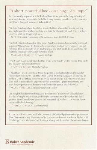 Internationally respected scholar Richard Bauckham offers a brief, engaging study of divine revelation in Scripture. He probes the deep meaning of well-known moments in the biblical story in order to address the key question the Bible is designed to answer: Who is God? Accessible for laypeople and important to scholars, this volume begins by exploring three key events in the Bible in which God is revealed: Jacob’s dream at Bethel (the revelation of the divine presence), Moses at the burning bush (the revelation of the divine Name), and Moses on Mount Sinai (the revelation of the divine character). In each case, Bauckham traces these themes through the rest of Scripture. He then shows how the New Testament builds on the Old by exploring three revelatory events in Mark’s Gospel, events that reveal the Trinity: Jesus’s baptism, transfiguration, and crucifixion. This book, now in paperback, is based on the Frumentius Lectures for 2015 at the Ethiopian Graduate School of Theology in Addis Ababa and on the Hayward Lectures for 2018 at Acadia Divinity College, Nova Scotia. “A short, powerful book on a huge, vital topic.”–N. T. Wright, University of St. Andrews; Wycliffe Hall, Oxford
