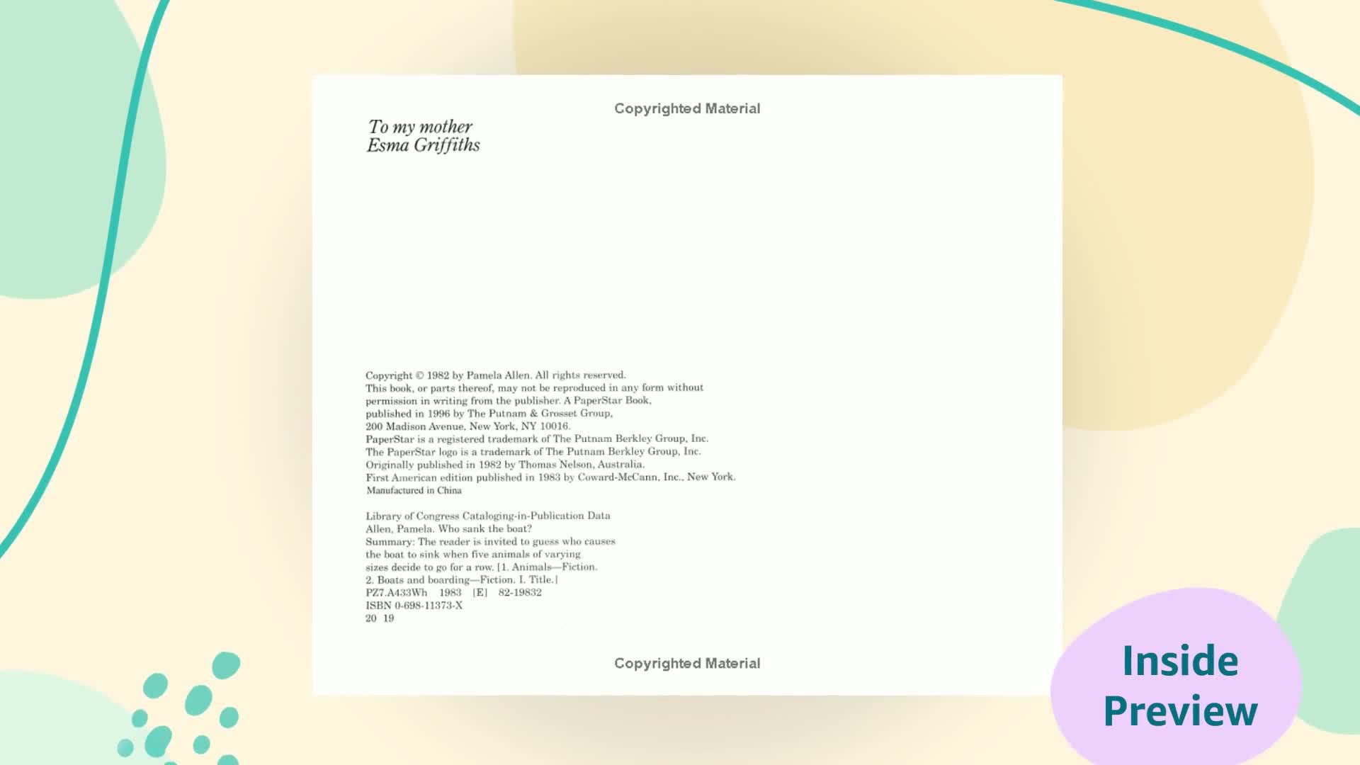 A charmingly funny read-aloud that asks an important question: “Who sank the boat?” Beside the sea, there once lived a cow, a donkey, a sheep, a pig, and a tiny little mouse. They were good friends, and one warm, sunny morning, for no particular reason, they decided to go for a row in the bay. Do you know who sank the boat? “The idea is funny, the pictures are splendid, and the easy text is just right for the very young.”–The New Yorker “A bright, brisk tale, simply told, illustrated by cheerful, comical pictures.”–The Bulletin of the Center for Children’s Books