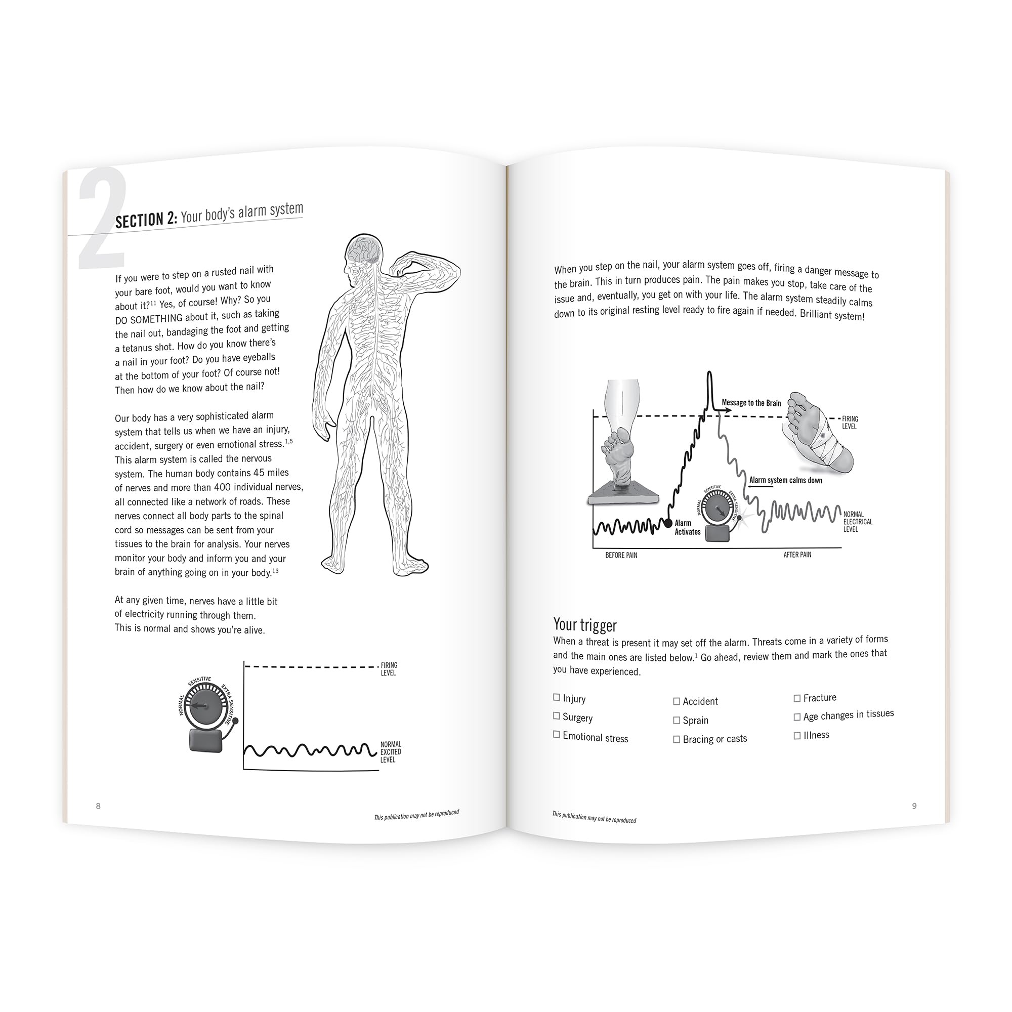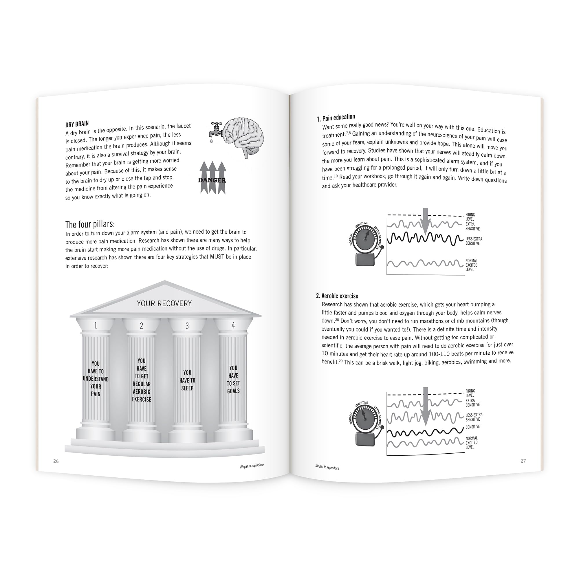 This workbook provides education on the neuroscience of pain, supporting health, biology, and psychology learning.