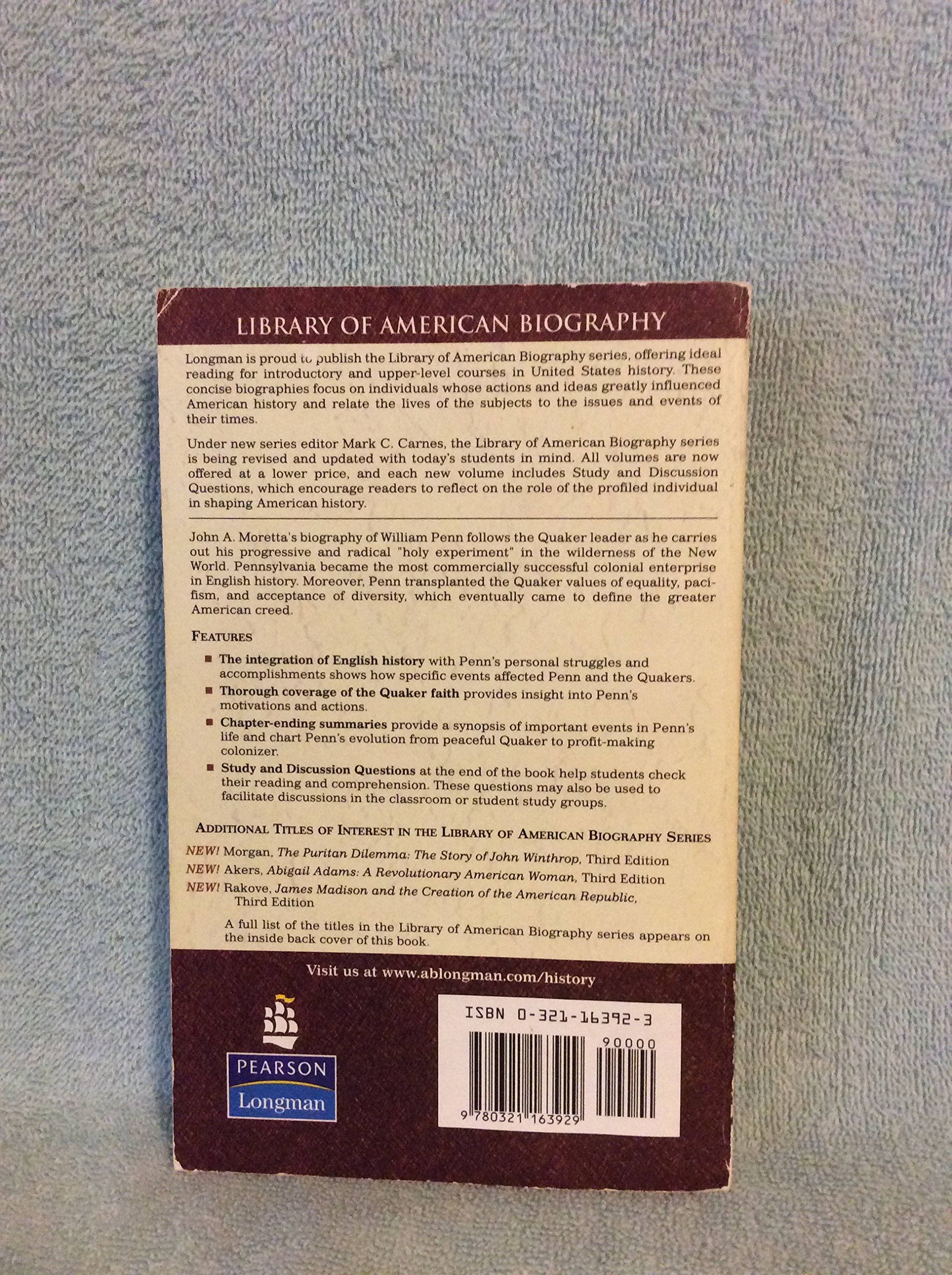 As the leader of one of the most progressive religious sects to emerge from England, William Penn envisioned Pennsylvania as an example of how a God-inspired society could succeed in the wilderness of North America. However, once in the New World, Quakers pursued both wealth and power, suggesting that even the most devout could not resist the temptations of the New World. Despite the moral struggle, Pennsylvania succeeded beyond anyones imagination. By Penns death in 1718, Pennsylvania was well on its way to becoming the most commercially successful colonial enterprise in English history. The titles in the Library of American Biography Series make ideal supplements for American History Survey courses or other courses in American history where figures in history are explored. Paperback, brief, and inexpensive, each interpretative biography in this series focuses on a figure whose actions and ideas significantly influenced the course of American history and national life. At the same time, each biography relates the life of its subject to the broader themes and developments of the times.