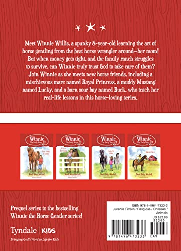 Meet Winnie Willis, a spunky 8-year-old learning the art of horse gentling from the best horse wrangler around–her mom! But when money gets tight, and the family ranch struggles to survive, can Winnie truly trust God to take care of them? Join Winnie as she meets new horse friends, including a mischievous mare named Royal Princess, a muddy Mustang named Lucky, and a barn sour bay named Buck, who teach her real-life lessons in this horse-loving series. This set includes the 4 books in the Winnie the Early Years series: Horse Gentler in Training A Horse’s Best Friend Lucky for Winnie Homesick Horse