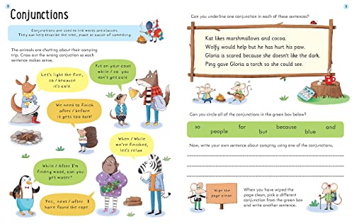 This entertaining wipe-clean activity book will help children practice and understand the rules of written English. Topics include clauses, conjunctions, adverbs, direct speech, present perfect tense and paragraphs. Part of the Usborne Key Skills series that supports the English lessons children learn at school. Includes secret notes for grown-ups.