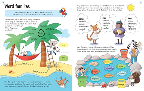 This activity book helps children aged 7-8 practice advanced English grammar concepts like clauses, adverbs, and direct speech.
