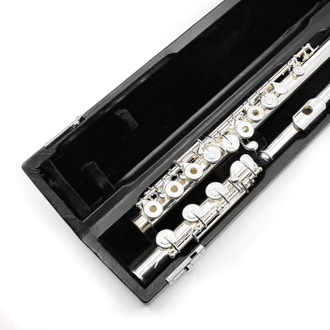Amadeus by William S. Haynes Model – Haynes Amadeus silver-plated headjoint with sterling silver (.925) lip plate and riser, silver-plated body and mechanism, drawn tone holes, French (open hole) model, pointed key arms, (.016″) tubing, offset G, B footjoint. AF580SE-BO – offset G, split E mechanism, B footjoint.