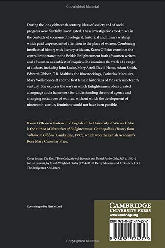 During the long eighteenth century, ideas of society and of social progress were first fully investigated. These investigations took place in the contexts of economic, theological, historical and literary writings which paid unprecedented attention to the place of women. Combining intellectual history with literary criticism, Karen O’Brien examines the central importance to the British Enlightenment both of women writers and of women as a subject of enquiry. She examines the work of a range of writers, including John Locke, Mary Astell, David Hume, Adam Smith, Edward Gibbon, T. R. Malthus, the Bluestockings, Catharine Macaulay, Mary Wollstonecraft and the first female historians of the early nineteenth century. She explores the way in which Enlightenment ideas created a language and a framework for understanding the moral agency and changing social roles of women, without which the development of nineteenth-century feminism would not have been possible.