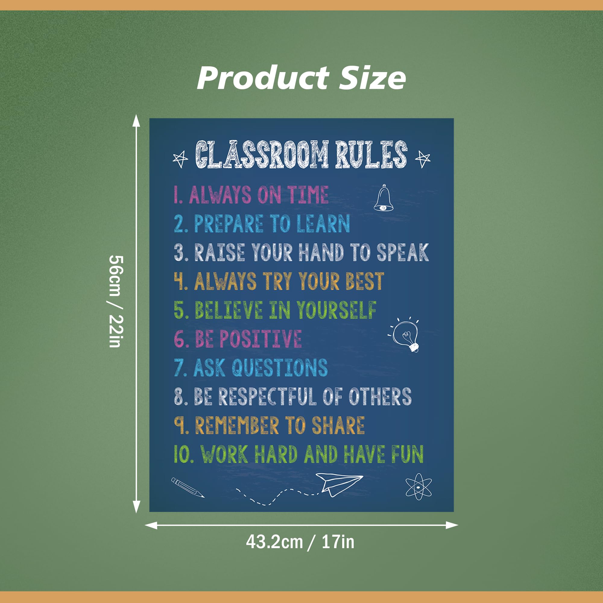 - Size: Classroom rules poster measures 22 x 17 inches, proper size to decorate on anywhere, large word and graphics ensuring that it can be easily seen and read for kids.