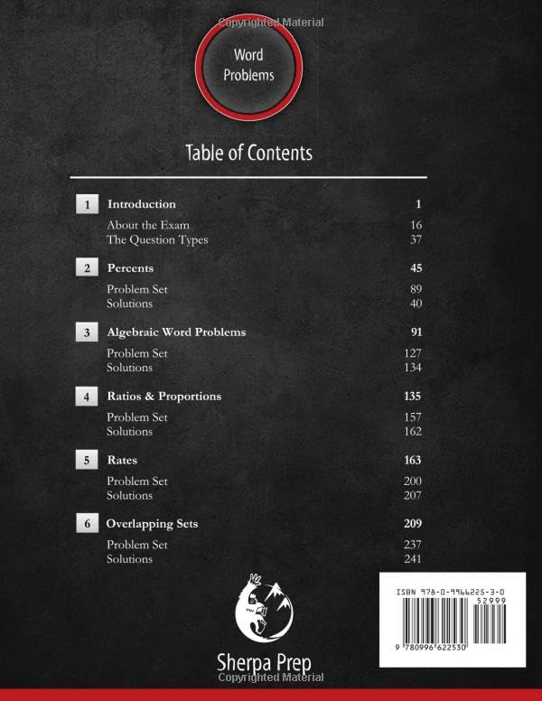 ***Need help with GRE Word Problems? You’ve come the right place.***Whether you need assistance with ADVANCED material or are STARTING from SCRATCH, you’ll find it here. Volume 3 of Master Key to the GRE is the only guide to GRE math that will teach you EVERYTHING you need to know about Percents, Ratios & Proportions, Algebraic Word Problems, Rates, and Overlapping Sets.***What’s included***– 75 full-length lessons on GRE(r) Word Problems– 200 practice questions, sorted by difficulty and topic– Tricks and shortcuts that you won’t find anywhere else– Analysis of every rate or advanced concept tested by GRE Word Problems– Step-by-step animated video solutions — Indications of which topics are commonly tested and which are not– 6-month access to our video solution library for Word Problems***Word Problems don’t have to be scary.***Our 260-page guide to GRE Word Problems assumes that you know NOTHING. Everything is presented as if you haven’t done math in years. To keep things simple, we discuss math in language that’s EASY to understand and focus on SMART strategies for every level of material. No matter how difficult a topic may be, we walk you through each concept, step by step, to ensure that everything makes sense. ***Need help with the ADVANCED stuff?***At the ends of our chapters, you’ll find a treatment of every rare and advanced Word Problems concept tested by the GRE. You won’t find these concepts discussed anywhere else. Master Key to the GRE is the only resource that covers them. We know that some of you only need help solving the most difficult questions — the questions that determine who scores ABOVE the 90th percentile. We’ve made sure that our materials teach EVERYTHING, so that students who need superstar scores get all the support they need.***TRICKS and SHORTCUTS you won’t find anywhere else..***Time is a major concern for most test-takers, so we’ve included every time-saving strategy out there to help you “BEAT the CLOCK”. We don’t care how well you think you know math. These shortcuts will save you valuable minutes, no matter what your current skill level may be.*** Over 200 practice questions.***Like our lessons, our practice questions are sorted by DIFFICULTY and TOPIC so that you can focus your efforts on material that is right for you. Nearly a quarter of these questions involve the most rare or advanced topics tested by GRE word problems. So if you’re looking for a lot of help with diabolical fare, you’ll find it here. Along the way, we let you know which topics are COMMONLY TESTED and which ones are not so that you can determine for yourself which topics are worth your time.***Animated VIDEO solutions.***Every practice question comes with an animated video solution. Short, written explanations are typically insufficient for students who find math challenging. By providing video solutions, we can talk you through our practice problems, every step of the way, so that you can follow along easily and see where your solution went wrong.