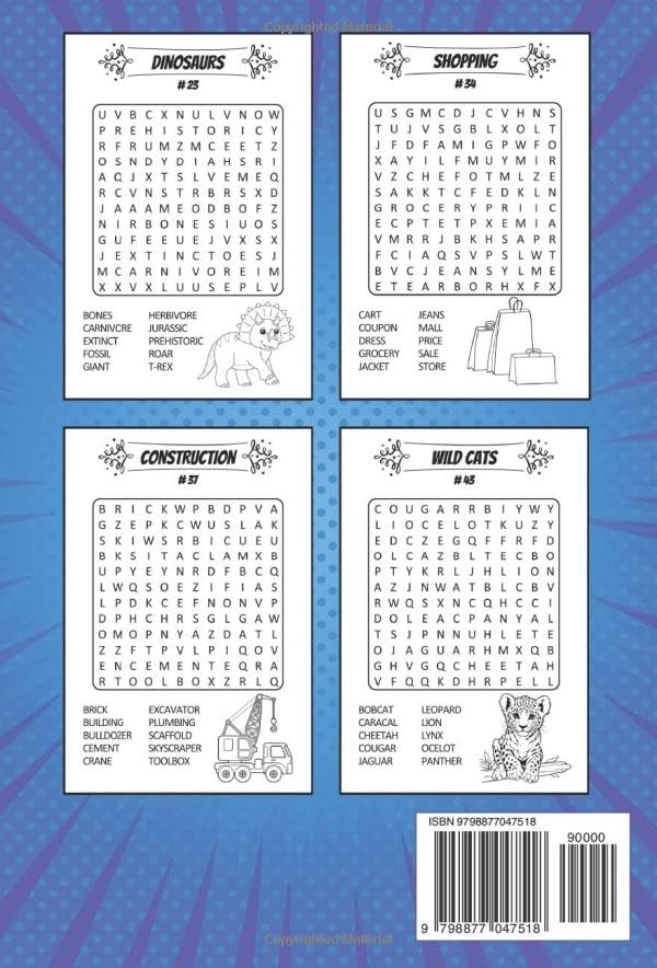 Unlock a World of Words: Explore, Learn, and Grow with Every Page! Dive into a world of words and wonder with “Word Search for Kids Ages 8-10”. Designed to captivate and educate young minds, this book is your child’s gateway to endless fun and learning. Perfect for kids who love puzzles and creativity! Inside the Book: 100 engaging word search puzzles. Each page features a theme-related black-and-white illustration for coloring. 10 words per puzzle, a total of 1000 words to discover. Solutions provided for all puzzles to boost confidence and learning. Ideal for enhancing vocabulary and cognitive skills. Why This Book is a Must-Have: “Word Search for Kids Ages 8-10” is more than a book – it’s a gateway to learning and joy. An ideal gift, it offers hours of fun while enhancing language and cognitive skills. This book masterfully combines education and entertainment, making it a valuable asset for any young learner. Get your copy of ‘Word Search for Kids Ages 8-10’ now – where learning meets fun!