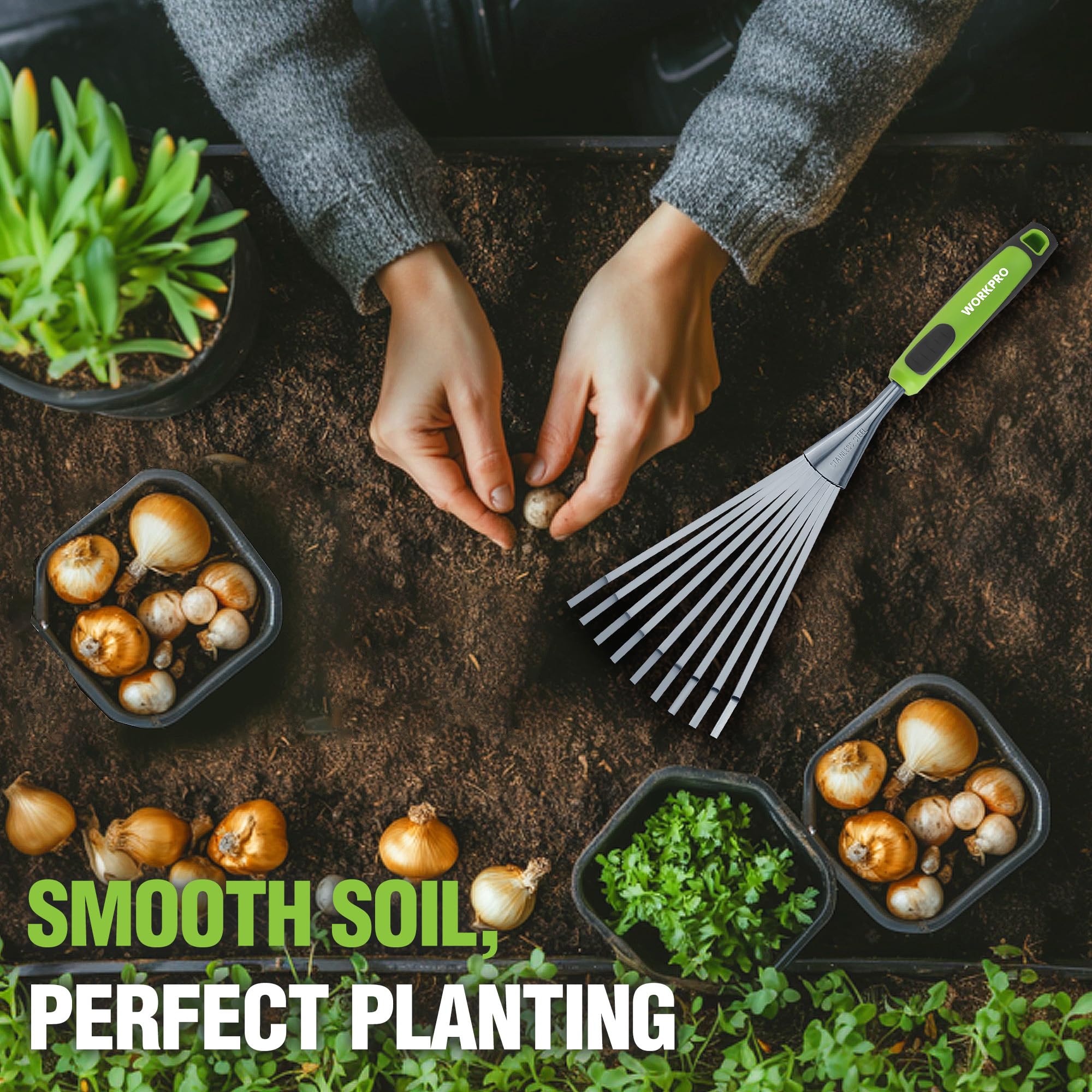 • Practical Gifts for Gardening Lovers: WORKPRO Garden hand rake is ideal for picking up leaves, cultivating, turning, and loosening soil in flower beds, herb gardens, and planter boxes. Designed for both experienced gardeners and beginners, this versatile tool ensures exceptional performance. A practical and thoughtful gift for any gardening enthusiast!