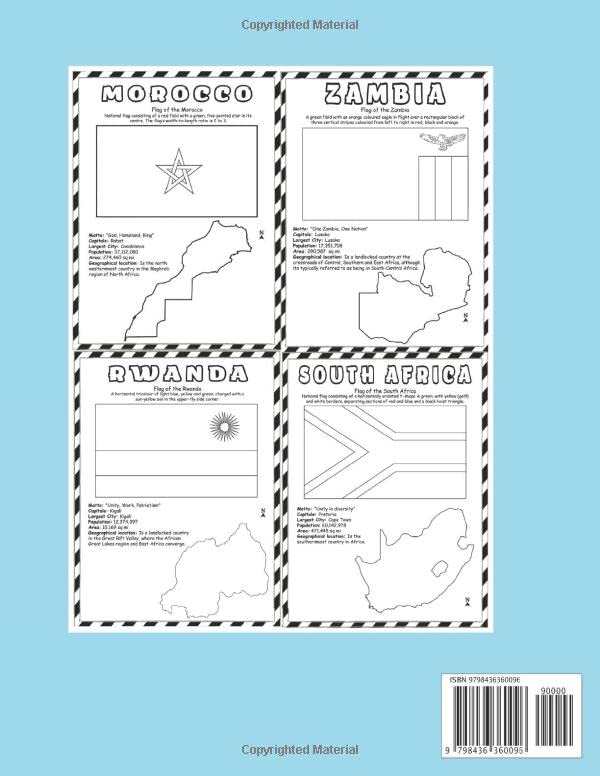 World Maps and Flags | Coloring Book: Africa: Coloring Book | Learn And Color Countries Names, Capitals, Maps, Flags, Motto, Area and more | Great Geography facts for Kids and Adults