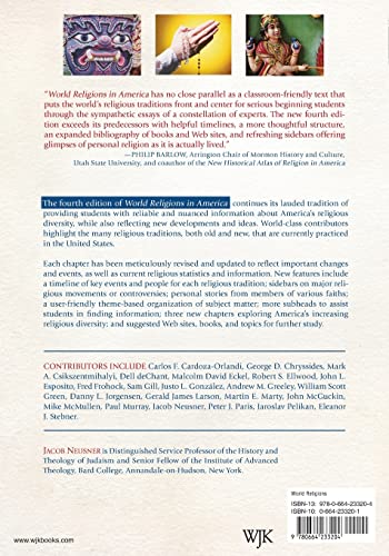 The fourth edition of World Religions in America continues its lauded tradition of providing students with reliable and nuanced information about America’s religious diversity, while also reflecting new developments and ideas. Each chapter was updated to reflect important changes and events, and current statistics and information. New features include a timeline of key events and people for each tradition, sidebars on major movements or controversies, personal stories from members of various faiths, a theme-based organization of subjects, more subheads, three new chapters exploring America’s increasing religious diversity, and suggestions for further study.