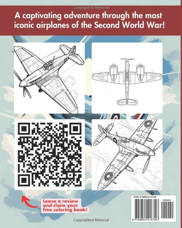 During the tumultuous era of World War II, aircraft technology underwent rapid advancements as nations scrambled for aerial dominance. From fighters to bombers, each aircraft played a pivotal role in shaping the outcome of the conflict. These very well curated coloring book pay homage to the bravery and innovation of wartime aviators. Experience the thrill of flight as you color iconic planes like the classic American P-51 Mustang, the famous Japanese Mitsubishi A6M Zero, the terrific German Messerschmitt Bf 109, and the valiant British Hawker Hurricane. Accompanying each illustration are insightful captions highlighting design features, military roles, and other essential details. Enjoy hours of immersive exploration into the fascinating world of World War II aviation. Whether you’re a seasoned enthusiast or a newcomer to the subject, join us on a journey through history as we celebrate the legacy of these iconic aircraft.