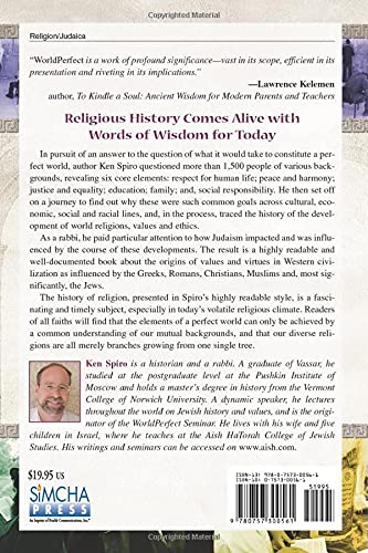 In pursuit of an answer to the question of what would constitute a perfect world, author Ken Spiro questioned more than 1,500 people of various backgrounds and religions. His findings revealed six core elements: Respect for human life; peace and harmony; justice and equality; education; family; and social responsibility. He then set off on a journey to find out why these were such common goals across cultural, economic, social and racial lines, and in the process, traced the history of the development of world religions, values and ethics. As a rabbi, he paid particular attention to how Judaism impacted, and was influenced by, the course of these developments. The result is a highly readable and well-documented book about the origins of values and virtues in Western civilization as influenced by the Greeks, Romans, Christians, Muslims and, most significantly, the Jews. The history of religion, presented in Spiros highly readable style, is a fascinating and timely subject, especially in todays volatile religious climate. Spiro divides his book into five engaging parts: Where the Quality of Mercy Was Not Strained: The World of Greece and Rome Against the Grain: The Jewish View A Father to Many Nations: Abraham and the Implications of Monotheism With Sword and Fire: The Rise of Christianity and Islam The New Promised Land: Impact of Judaism on Liberal Democracies Readers of all faiths will find that the elements of a perfect world can only be achieved by a common understanding of our mutual backgrounds and that our diverse religions are all merely branches growing from one single tree.