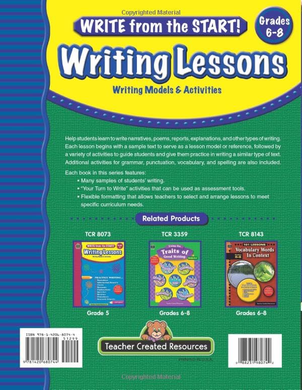 This book provides writing lessons, models, and activities to improve the writing skills of students in grades 6-8.