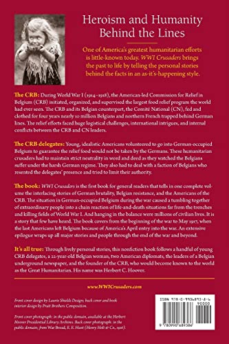 2018 Kirkus Reviews Best Books of the Year 2018 Colorado Book Awards Finalist 2018 Foreword Magazine’s INDIE Best Book of the Year Finalist “A TOUR-DE-FORCE HISTORY . . . gripping historical narrative . . . A magnum opus that celebrates the qualities of compassion, honor, and humanitarian virtue.” Kirkus Reviews Starred Review & BEST BOOKS OF 2018 The true story of young, untested American volunteers who entered German-occupied Belgium to attempt what had never been done before — save an entire nation from starvation that was trapped in the middle of a world war. One of America’s greatest humanitarian efforts is little-known today. WWI Crusaders brings the past to life by telling the personal stories behind the facts in an as-it’s-happening style. During WWI (1914-1918), the American-led Commission for Relief in Belgium (CRB) initiated, organized, and supervised the largest food relief program the world had ever seen. The CRB and its Belgian counterpart, the Comite National (CN), fed for four years nearly 10 million Belgians and northern French trapped behind German lines. The relief efforts faced huge logistical challenges, international intrigues, and internal conflicts between the leaders of the CRB and CN. Young, idealistic Americans volunteered to go into German-occupied Belgium to guarantee the relief food would not be taken by the Germans. These humanitarian crusaders, known as CRB delegates, had to maintain strict neutrality as they watched the Belgians suffer under the harsh German regime. They also had to deal with a faction of Belgians who resented the Americans’ presence and tried to limit their authority. WWI Crusaders is the first book for general readers that tells in one volume the interlacing stories of German brutality, Belgian resistance, and the young Americans who went into German-occupied Belgium. The situation in German-occupied Belgium during the war caused a tumbling together of extraordinary people into a chain reaction of life-and-death situations far from the trenches and killing fields of World War I. And hanging in the balance were millions of civilian lives. Through lively personal stories, this nonfiction book follows a handful of young CRB delegates, a 22-year-old Belgian woman, two American diplomats, the leaders of a Belgian underground newspaper, and the founder of the CRB, who would become known to the world as the Great Humanitarian. His name was Herbert C. Hoover. The book covers from the beginning of the war to May 1917, when the last Americans left Belgium because of America’s April entry into the war. An extensive epilogue wraps up all major stories and people through the end of the war and beyond. It is a story that few have heard.