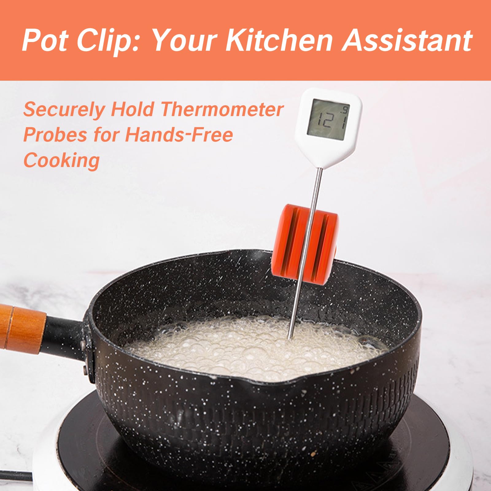 - Secure Thermometer Placement: The Pot Clip ensures that your thermometer probe stays securely in place while you cook. Simply clip it onto your pots, pans, or other cookware, and you can easily monitor the temperature without having to hold the probe