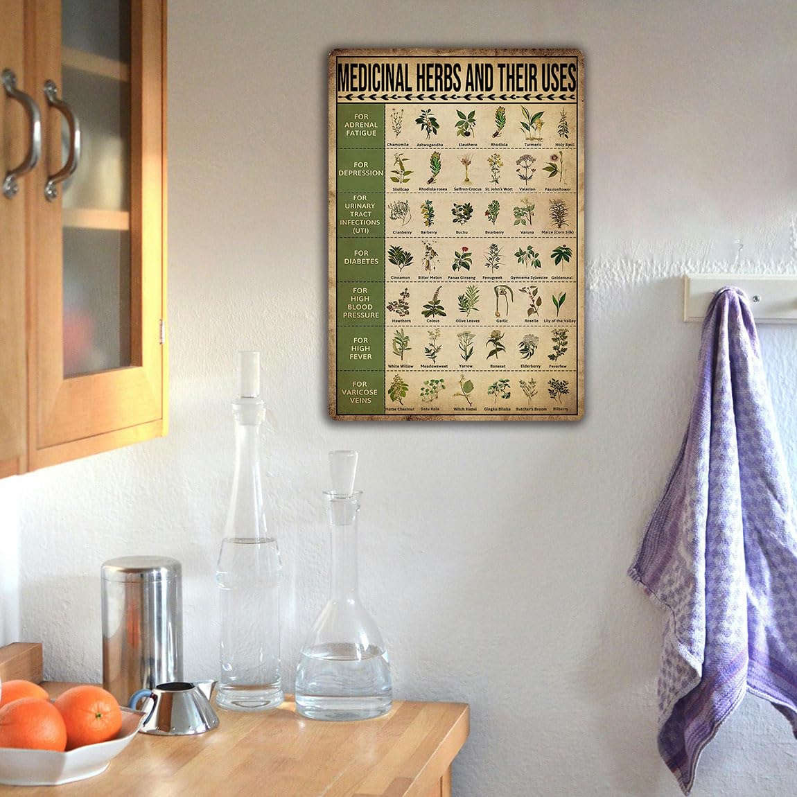 Ykfss Vintage Herb Knowledge Metal Tin Sign Homesteading Knowledge Poster Plant Signs Planting Guide Chart Herb Decor Medicinal Herbs And Their Uses Posters 8×12 Inch