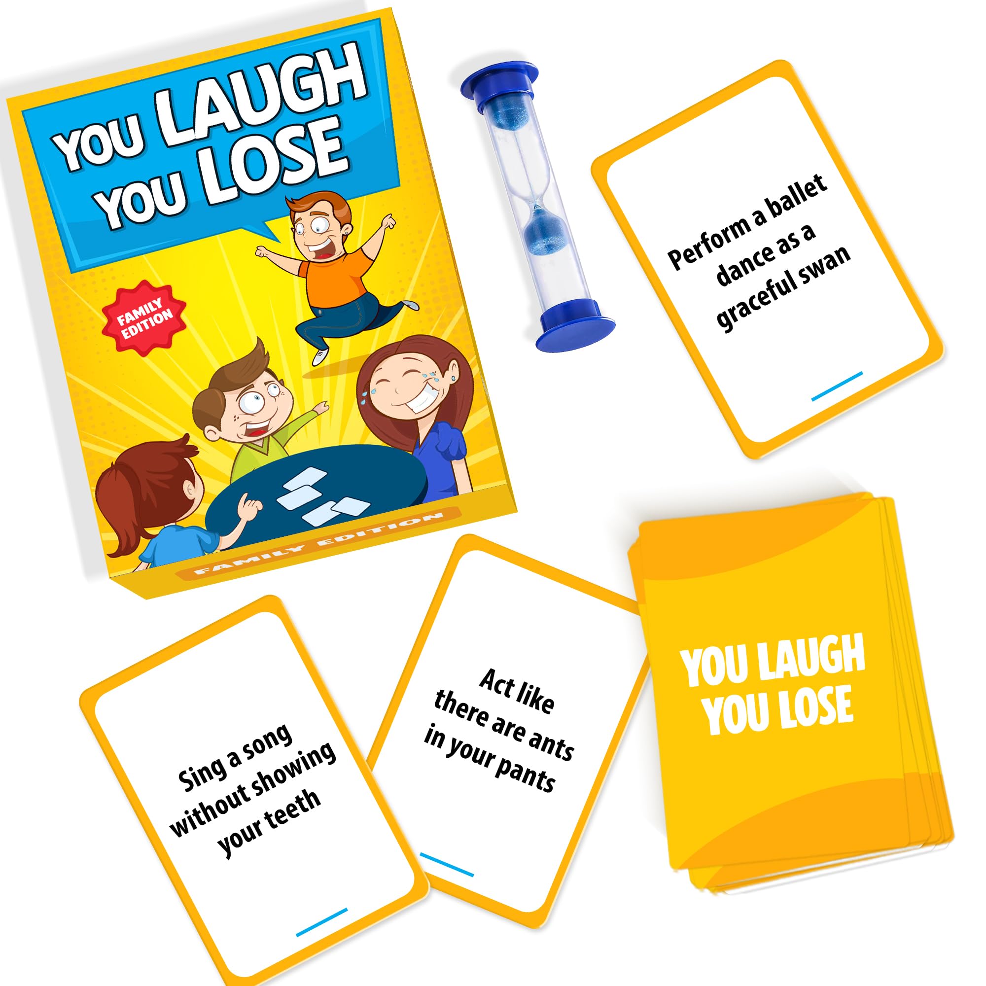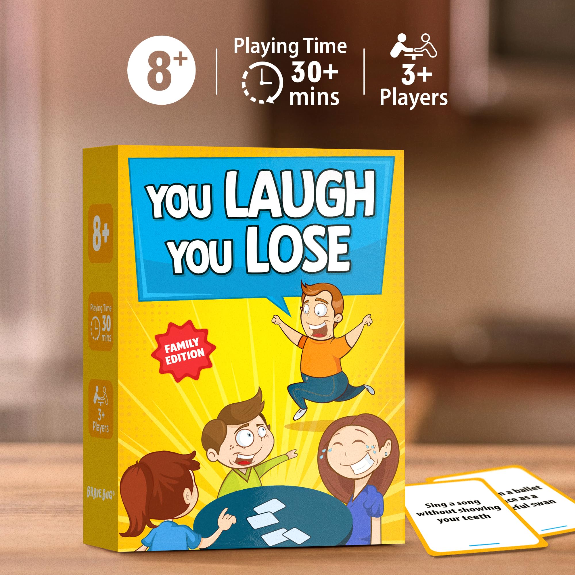 - YOU LAUGH YOU LOSE – The game brings energy and fun to your game night, perfectly play with your families or friends! Try to make each other laugh by acting out many hilarious challenges. But remember if you laugh, you lose!