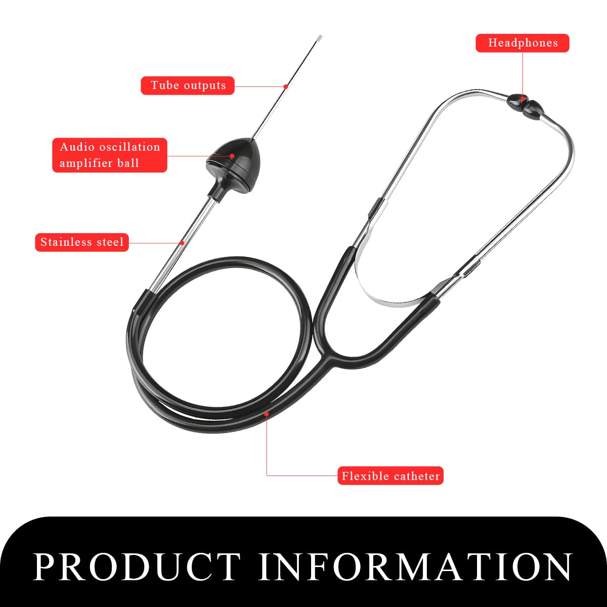 - [(Wonderful Design)] : With an extension probe length of 8.7″, a line length of 21.7″ and a tube length of 3.5″, the stethoscope allows mechanics to reach deep and confined areas of the engine compartment. It provides great access to hard-to-reach spots.