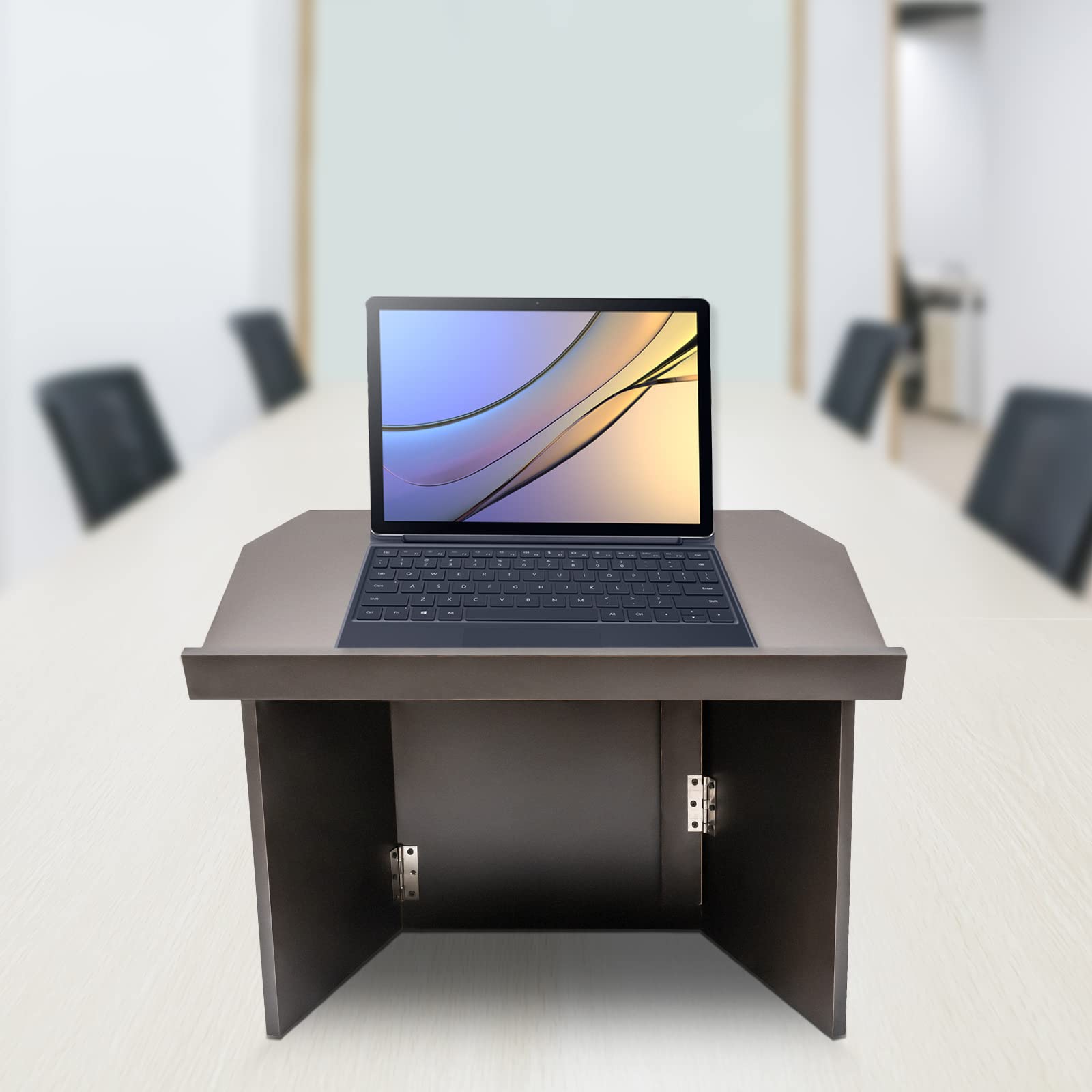 - [(Good Material)] The foldable tabletop podium is made of wood, which means that it is very strong, durable, environmentally friendly, and has the beautiful grain and color of natural wood. The dust and stains on the smooth, flat wood surface can be quickly wiped away with a damp rag.