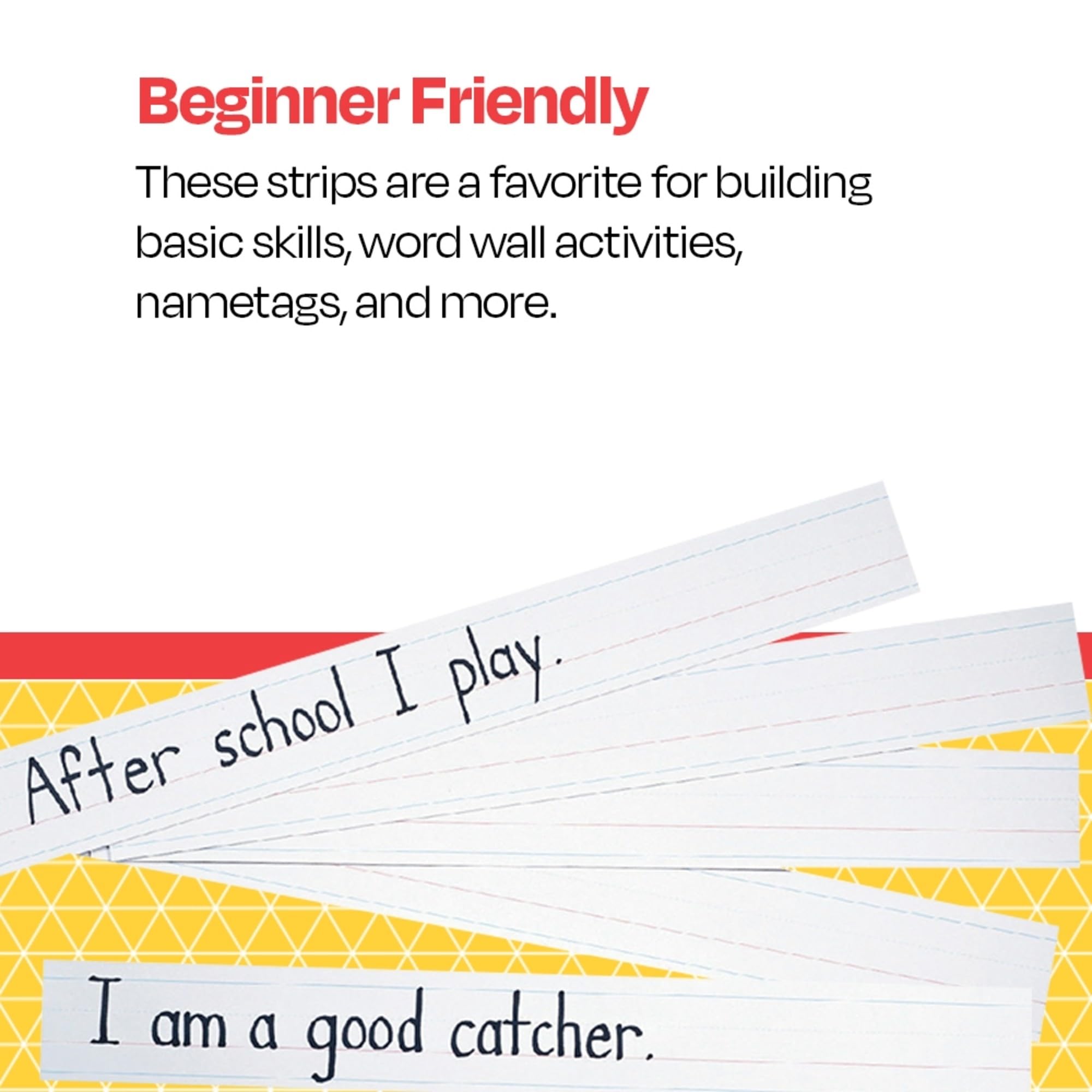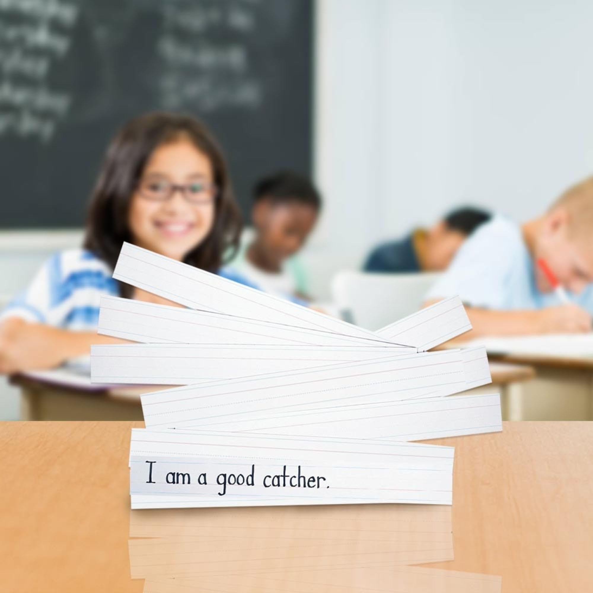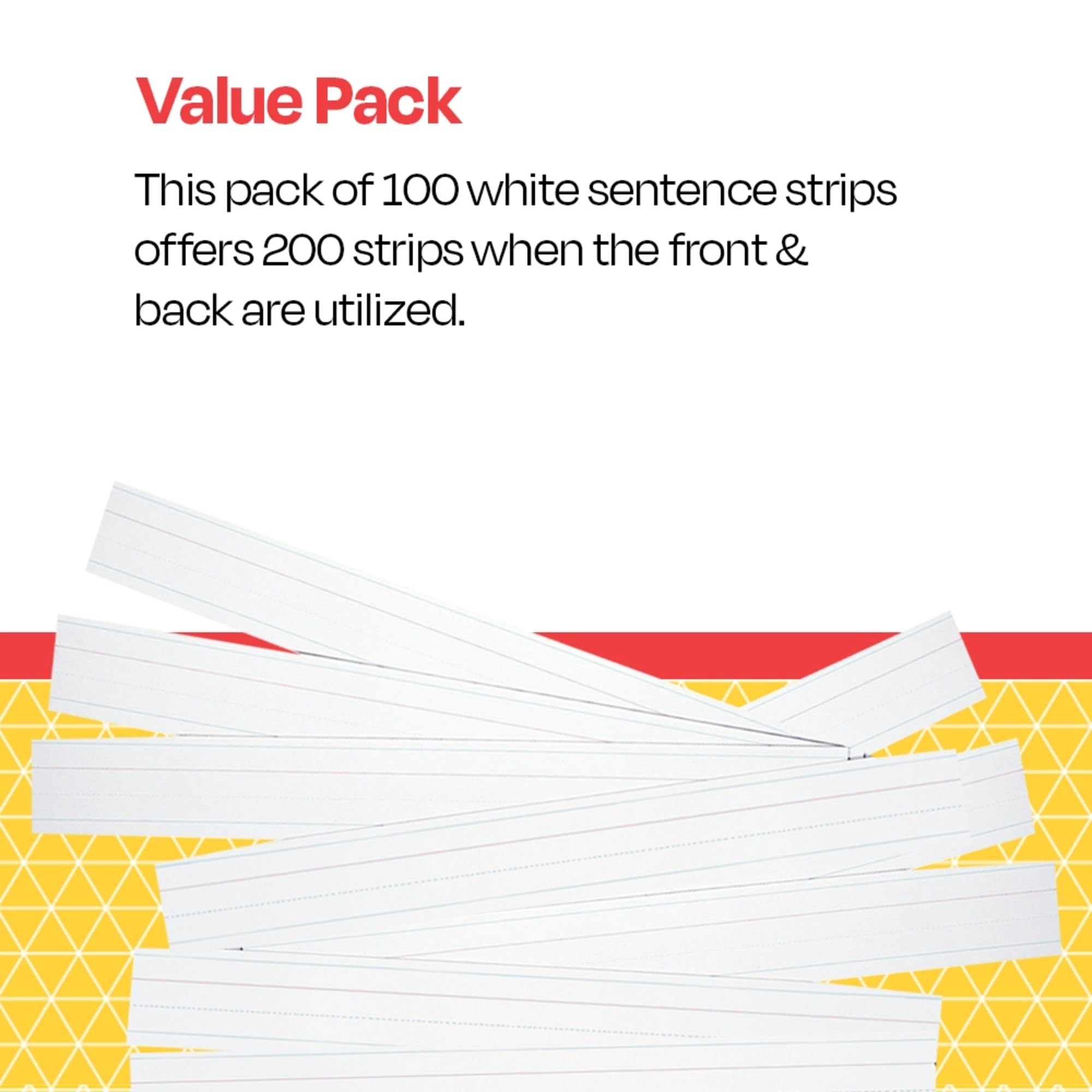 - Zaner Bloser Style White Sentence Strips measures 3 x 24 inches with ruling and coordinates 1-1/2 inch letters. These heavyweight solid strips are created with 100 lb tagboard for durability. Ideal for many classroom and office uses.