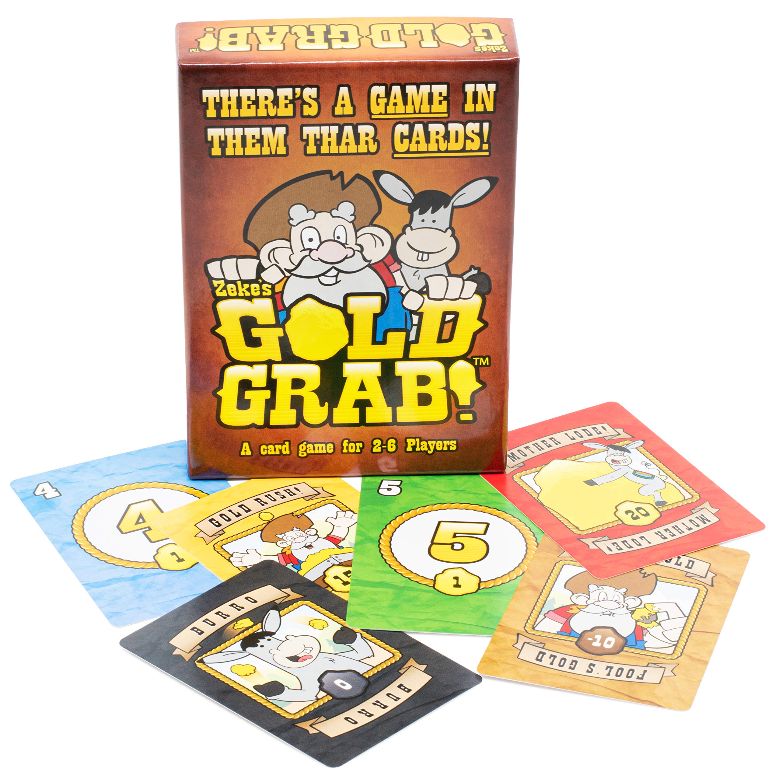 - QUICK PLAY-TIME: For 2 to 6 players, Zeke’s Gold Grab is the family fun card game that can be played in about 20 minutes. Its the perfect addition to a family game night, or, thanks to its high replay-ability, can be played several times itself in one evening. Many Zeke Gold Grab players enjoy bringing it along to their favorite restaurant or micro-brewery, playing a quick game while waiting for their order.