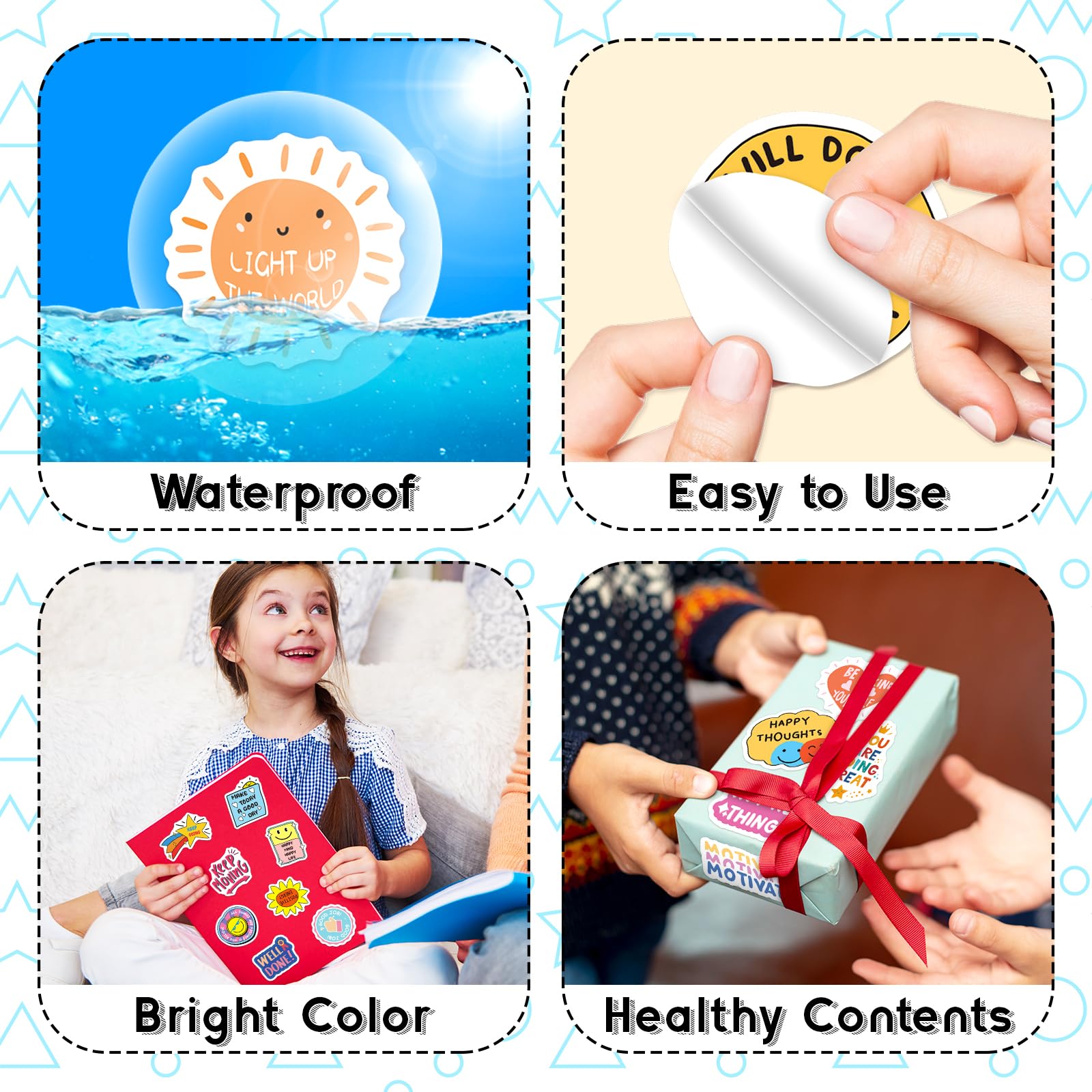 Energy Spreading: Looking for a meaningful gift? These motivational stickers make an excellent present for family, friends, teachers, and students. Whether for birthdays or holidays, these stickers help brighten someone’s day