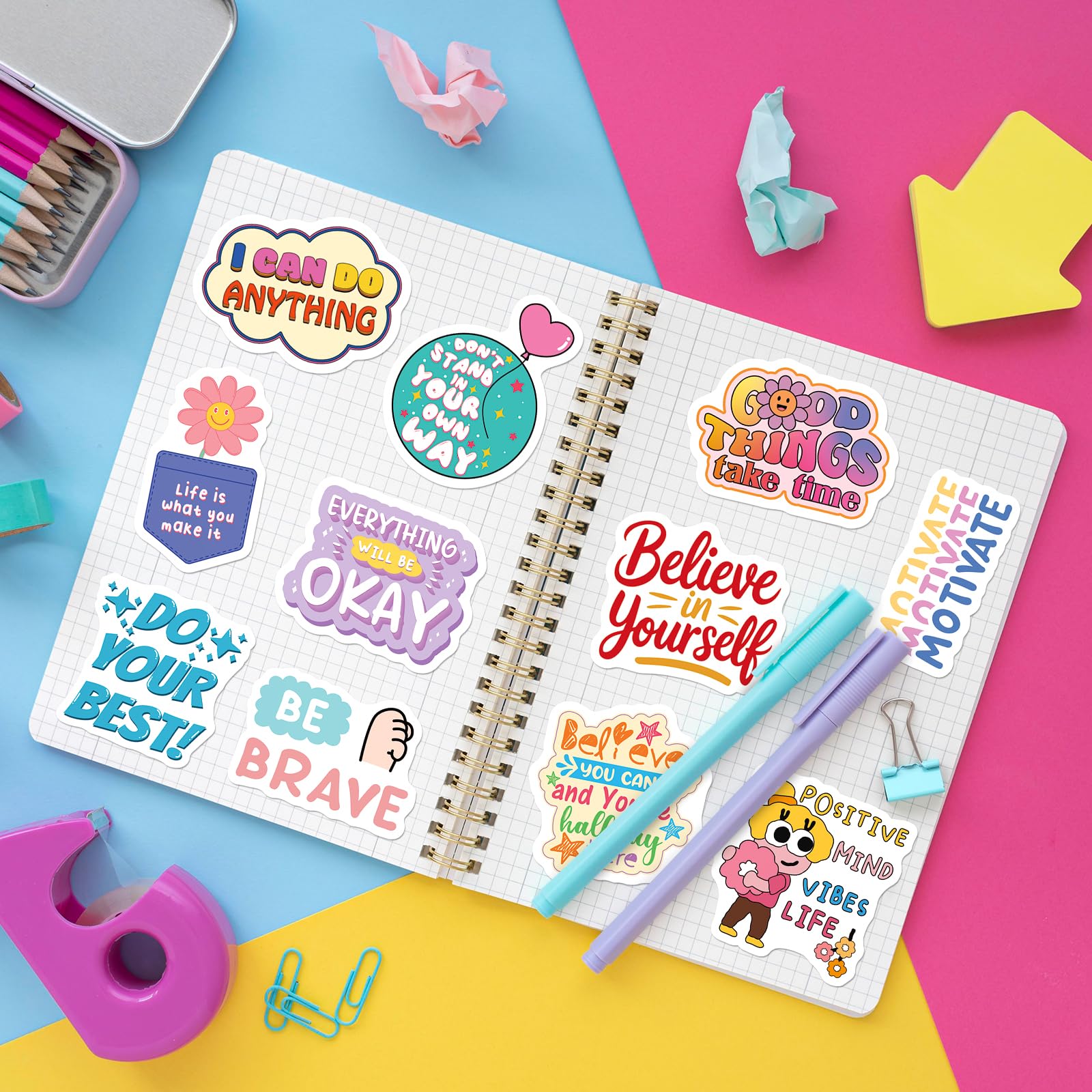 Wide Application: These unique positive quote stickers feature vibrant colors, cute graphics, and uplifting messages. Perfect for water bottles, scrapbooks, laptops, planners, luggage and school or office supplies