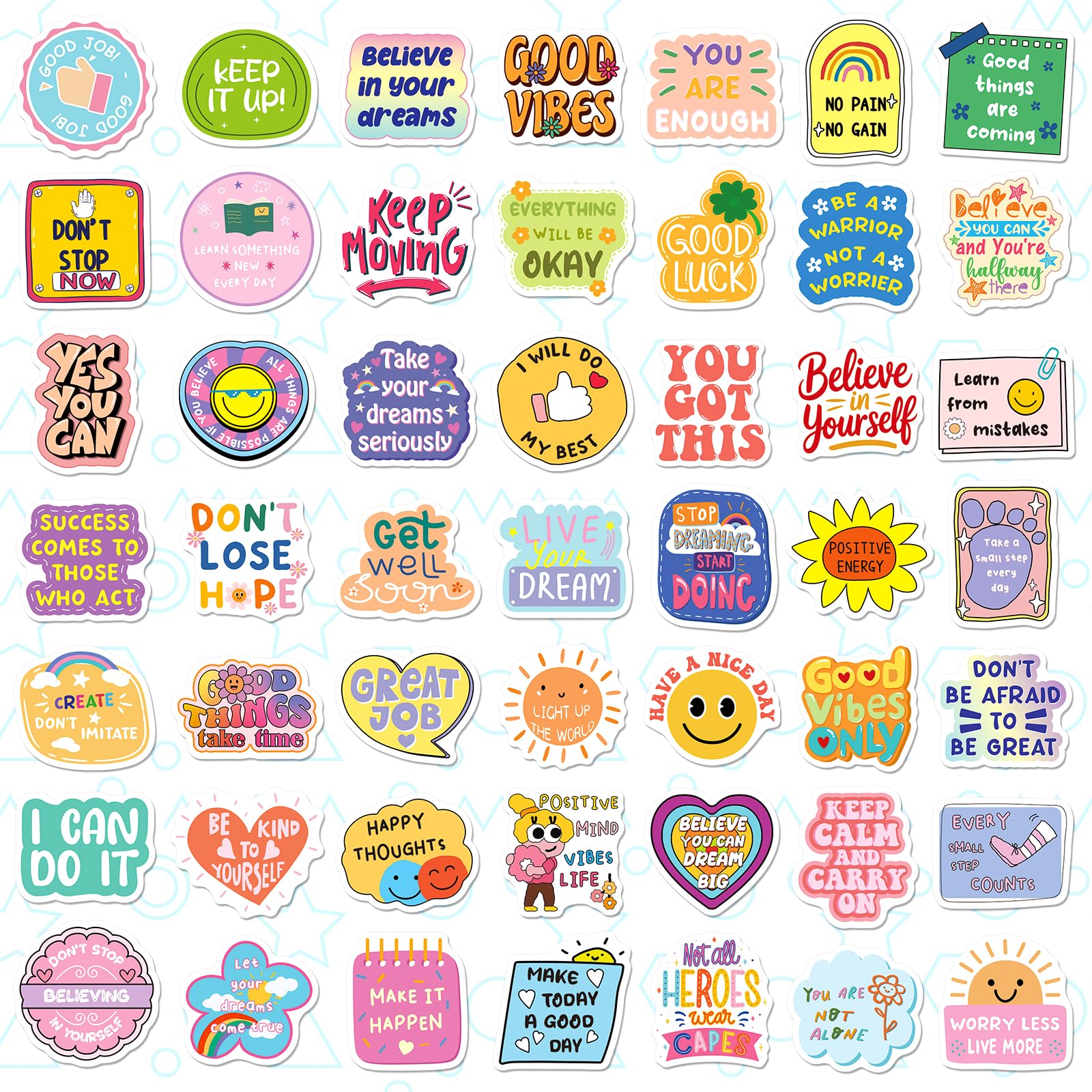 Inspirational Designs: These uplifting stickers feature simple affirmations and vibrant, colorful designs. Perfect as incentives, motivation boosters, or rewards, they help build confidence and inspire enthusiasm