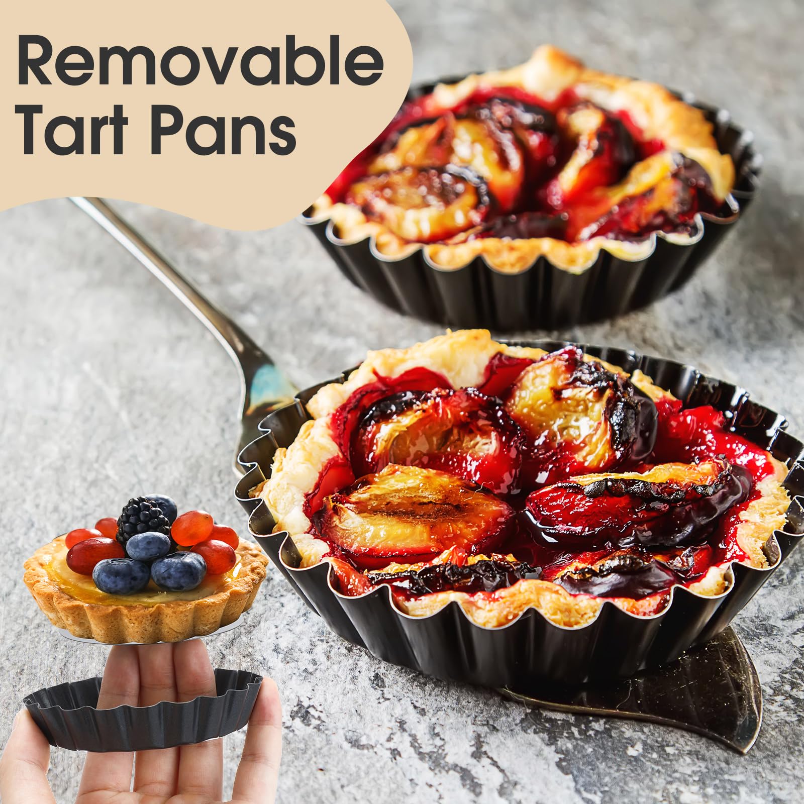• Quality and Durable: our removable bottom tart pan is made of quality carbon steel and has good heat conduction, with non stick coating, easy to clean, just put all parts in the dishwasher after use; The mini tart pans for baking are not easy to deform or bend, durable and sturdy, can serve you for a long time and bring you a good using experience