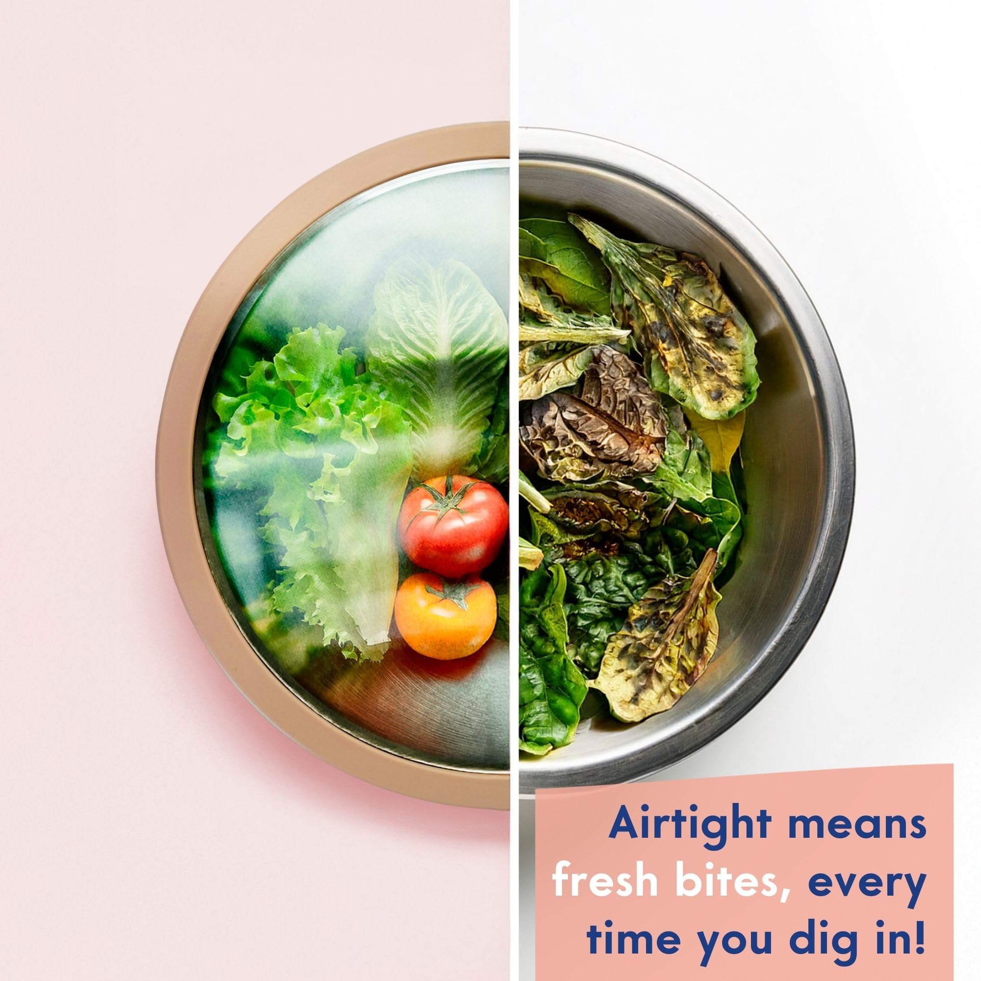 Safer Food, No Plastic Contact – Your food stays 100% free from toxins thanks to glass, BPA-free lids and pure stainless steel bowls–so no plastic ever touches what you eat.