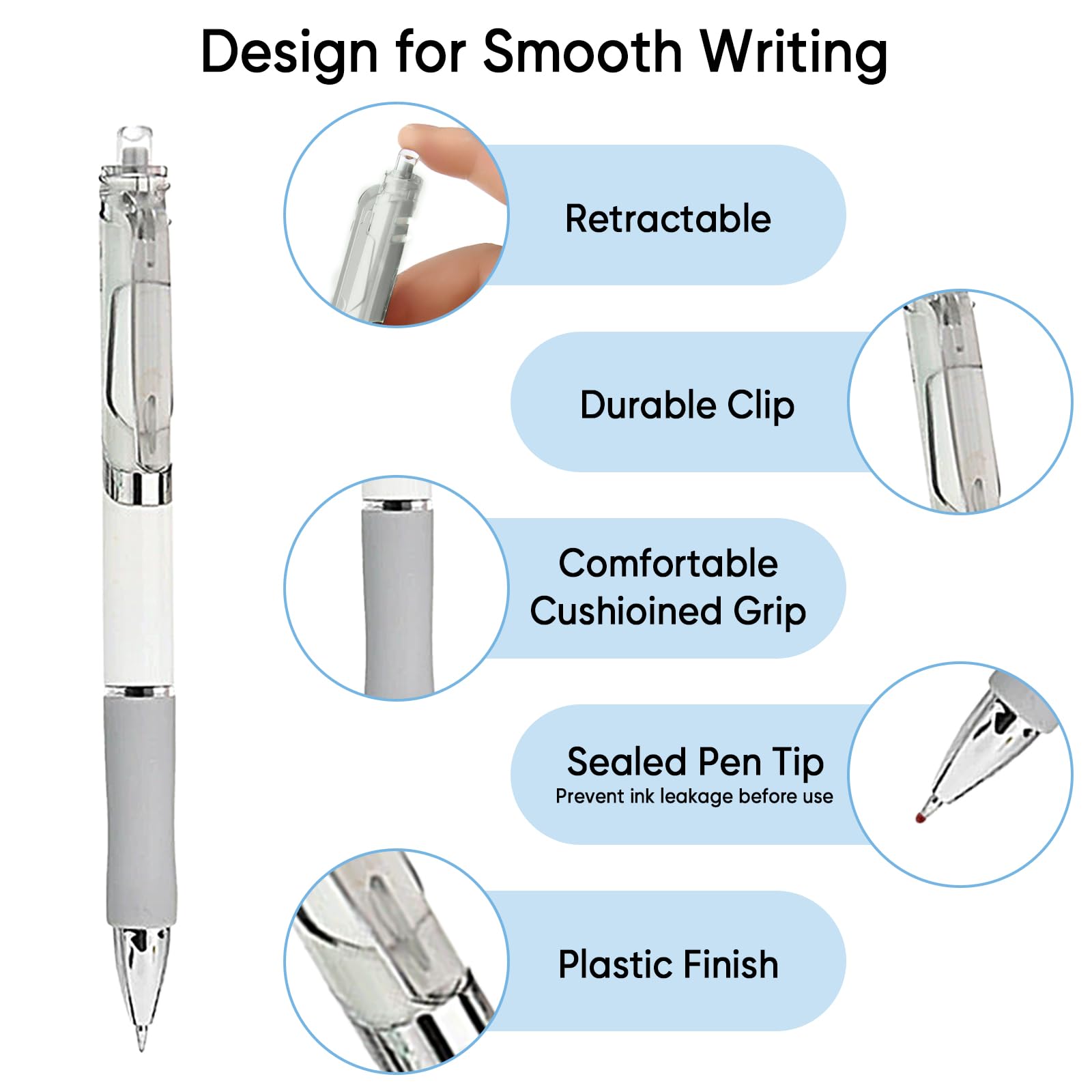 - Trusted Reliability Retractable Gel Pens: Our ballpoint set is quick-dry, waterproof ink resists smudging and bleeding through paper. Replaceable refills design offers long-term value for students, teachers, nurses, planner, and busy professionals
